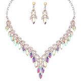 Material & Size:Made of lightweight Zinc alloy, Lead & Nickle free, hypoallergenic, fearless of skin allergy and rashes.Decked with sparkly crystals, not overwhelming, no cloudiness,just the right amount of shine. Comfortable extended chain design, we could resize it as we like. Necklace: 16"+3" long, 2" pendant in length. Earrings: 1.5"*0.6"(Approx.)