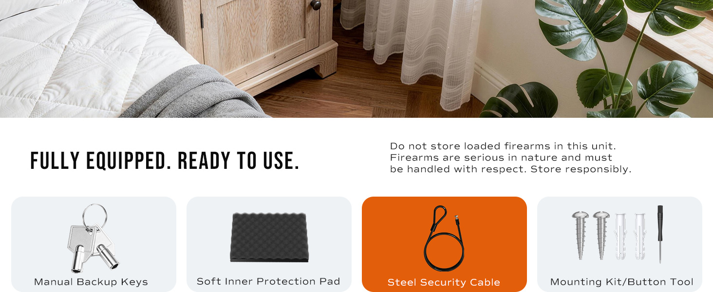 مصدر الطاقة في حالات الطوارئ: تتميز المسدس الآمن للمسدس بمنفذ USB من النوع C مدمج على الجانب (كابل الشحن غير متضمن)، مما يوفر طريقة للوصول إلى صندوق القفل هذا في حالة الطوارئ عندما تكون البطاريات ميتة أو المفاتيح الاحتياطية مفقودة. هذا المنفذ مخصص للاستخدام في حالات الطوارئ فقط وليس مخصصًا لنا على المدى الطويل