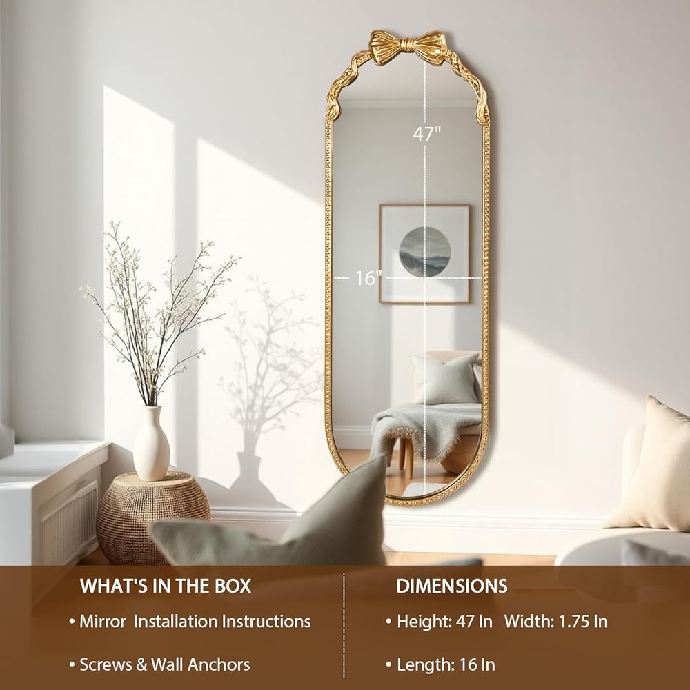 مرآة حائط مقاس 16 × 47 بوصة - المرآة مقاس 16 × 47 بوصة هي حجم مناسب لوضعها في أي مكان في مساحتك الخاصة. المرآة الكبيرة لكامل الجسم، مصنوعة من حديد الزهر القوي عالي التحمل مع لمسة نهائية ذهبية عتيقة، تزن 14.33 كجم.