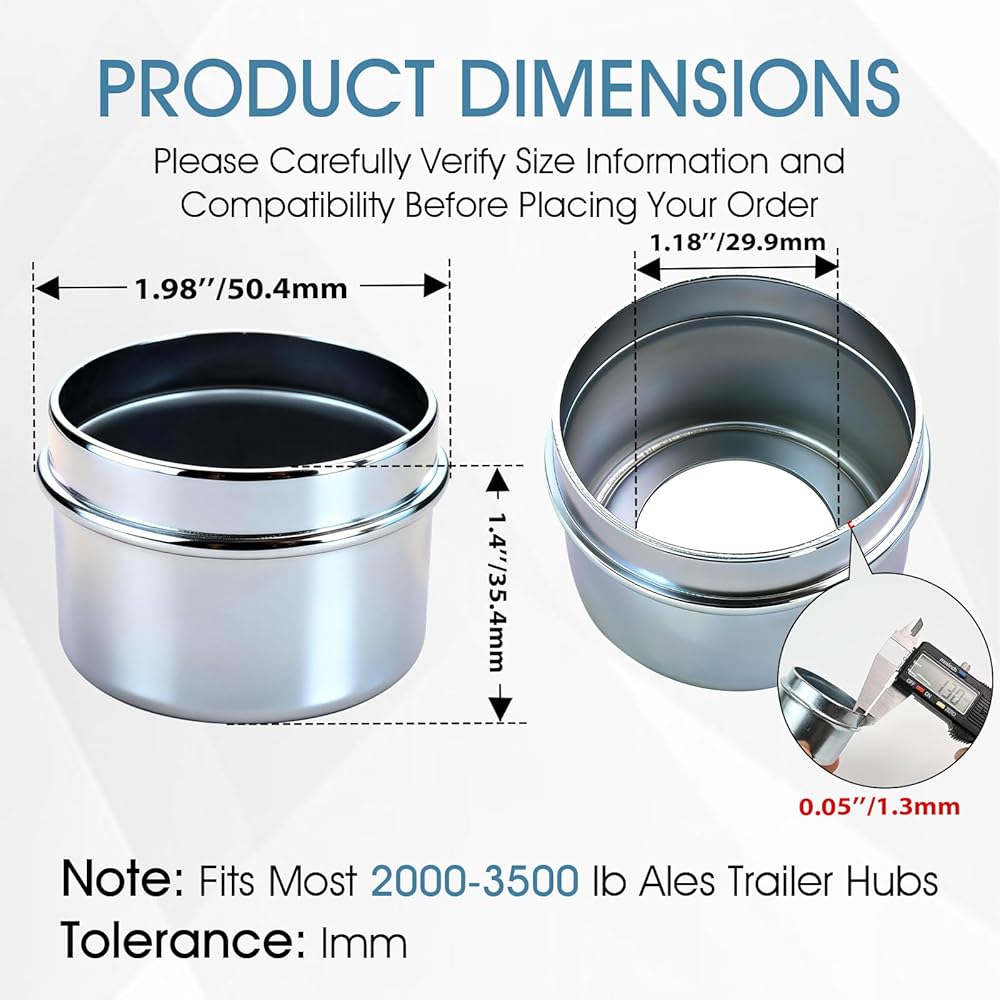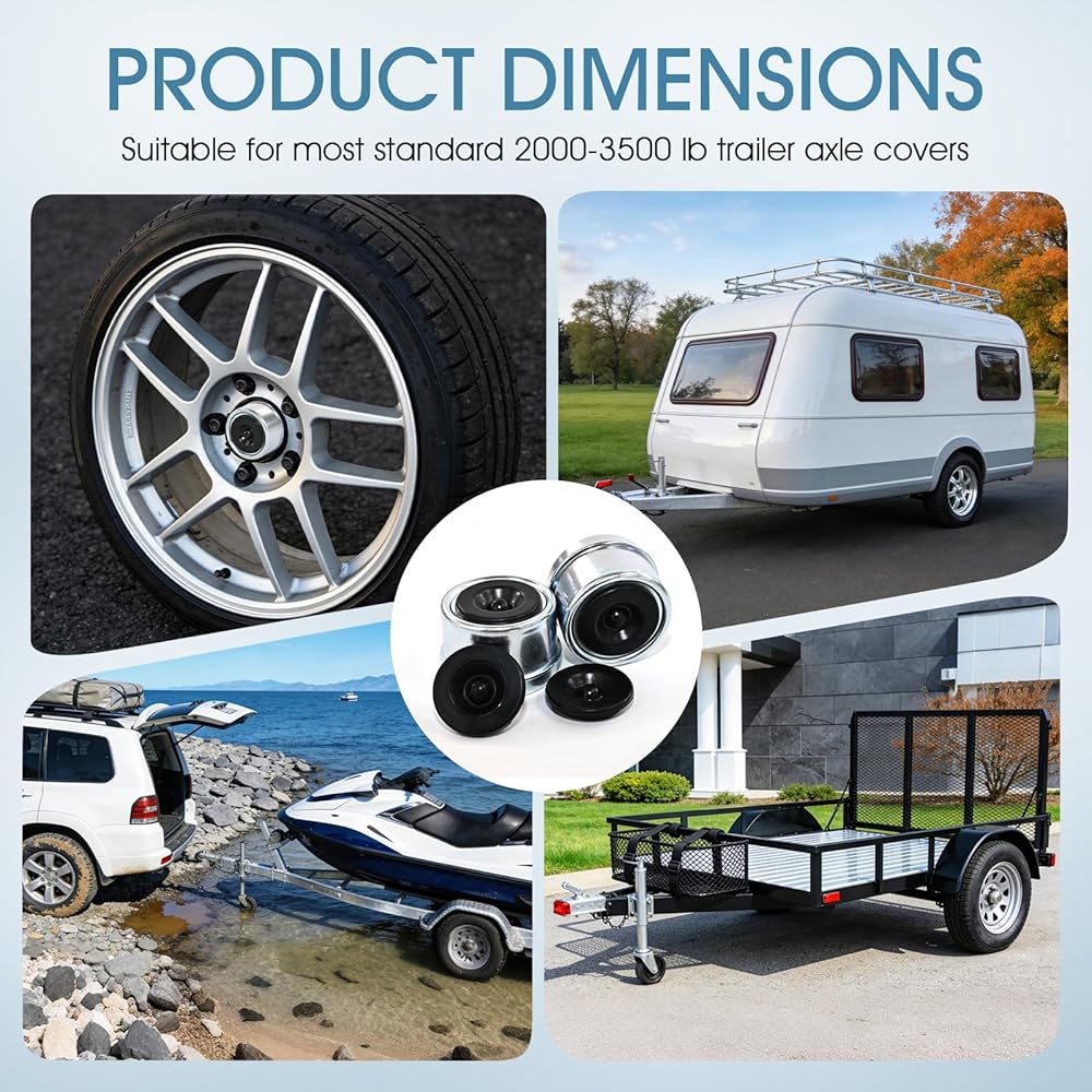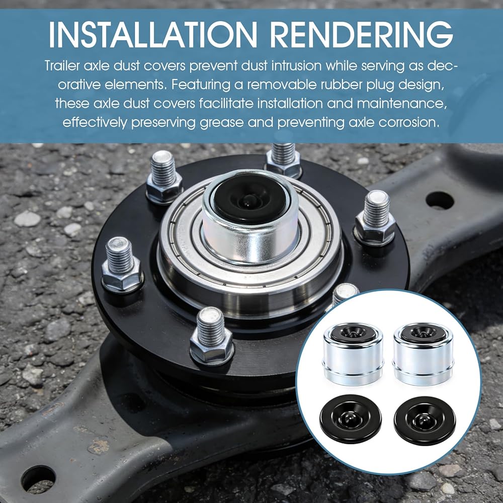 Crafted from heavy-duty, corrosion-resistant carbon steel and sealed with a reinforced rubber plug, these dust caps deliver durable, long-lasting defense against water, road salt, and abrasive debris. Each pack is a complete trailer wheel bearing kit, including 2 precision-fit caps and 2 bonus rubber seals to ensure a perfect, leak-proof installation every time—offering security akin to premium bearing buddies.