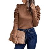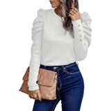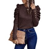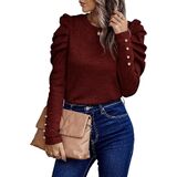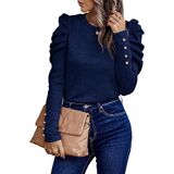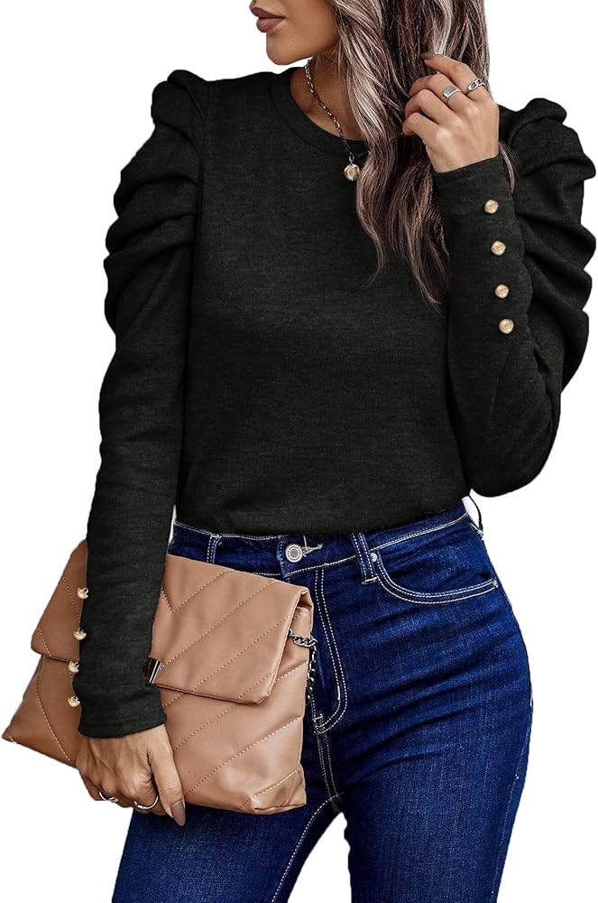 مميزات الطراز: قميص أنيق برقبة دائرية وأكمام منتفخة مميزة وتفاصيل أزرار مزخرفة على طول الأكمام لمظهر أنيق
