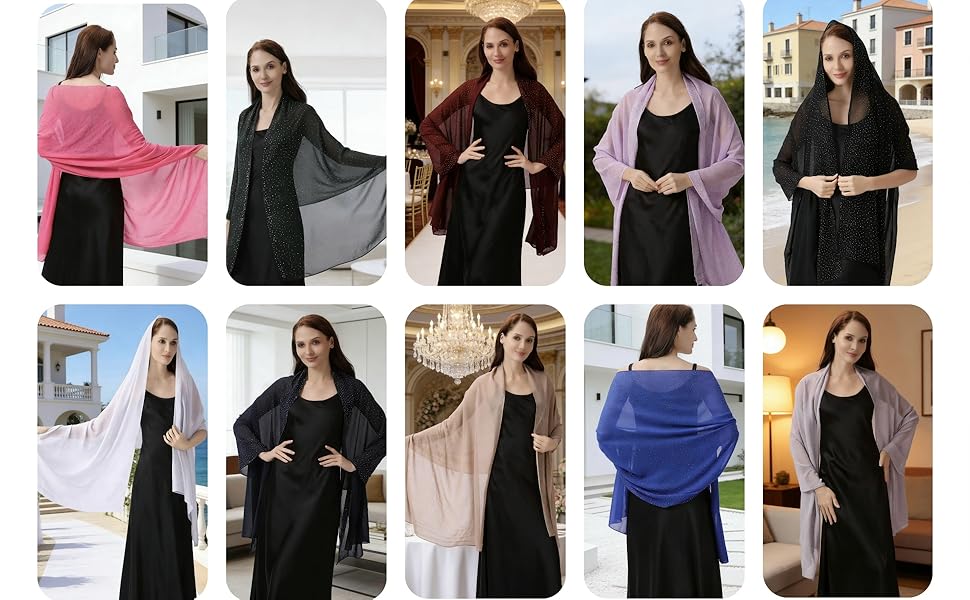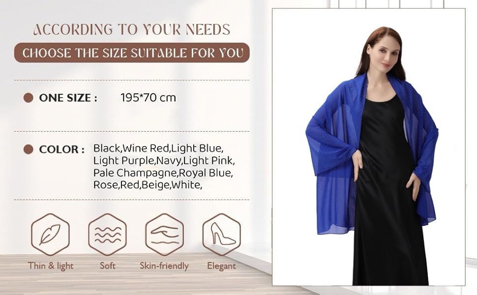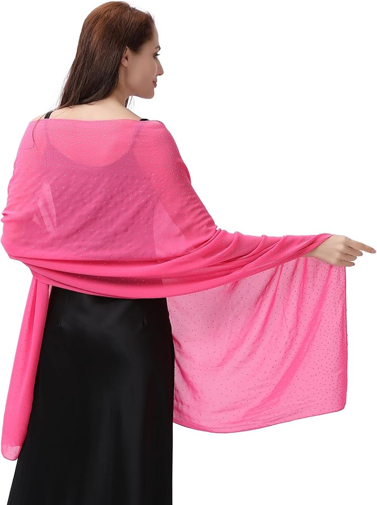 - تصميم أنيق: شال شفاف خفيف الوزن مزين بأحجار الراين المتلألئة، مثالي لإضافة لمسة من التألق إلى ملابس السهرة والملابس الرسمية