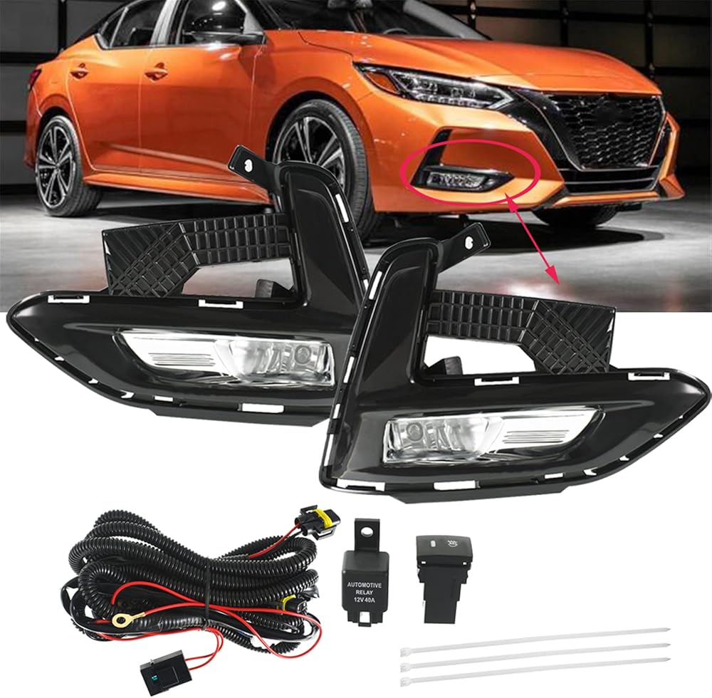 Fog Light Lamp Assembly Passenger and Driver Side Replacement for Sentra 2020 2021 with Bulbs+Front Bumper Fog Light Covers+Harness Switch Kit