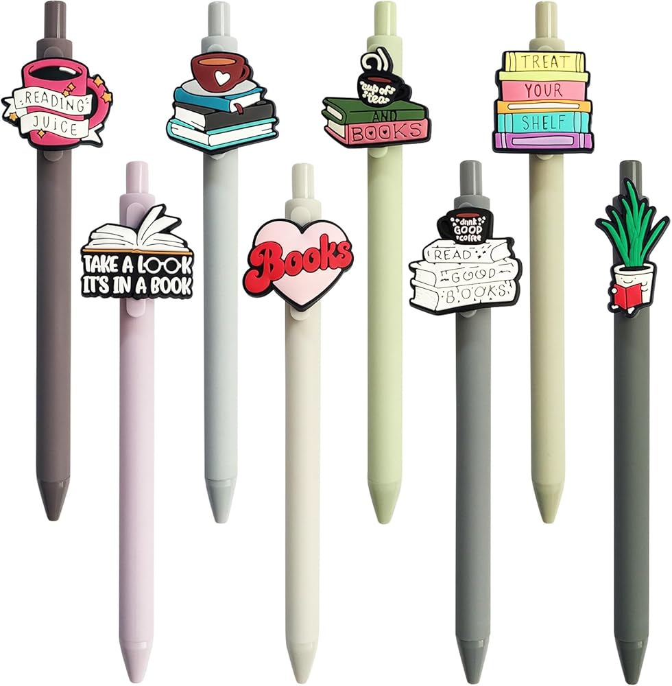 ما ستحصل عليه: ستحصل على 8 أقلام هدايا لنادي الكتب بتصميمات مختلفة، تتميز بمجموعة غنية من الألوان والأنماط لتلبية احتياجاتك اليومية ومناسبات تقديم الهدايا.
