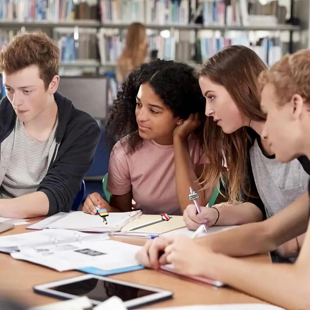 هدايا محبي الكتب: أقلام الهدايا الجميلة التي تحمل طابع الكتب تمثل الهدايا المثالية للقراء، ودودة الكتب، وأمناء المكتبات، والكتاب، والمعلمين والطلاب - سواء للعودة إلى المدرسة، أو أعياد الميلاد، أو التخرج، أو الذكرى السنوية، أو العطلات ومفضلات الحفلات.
