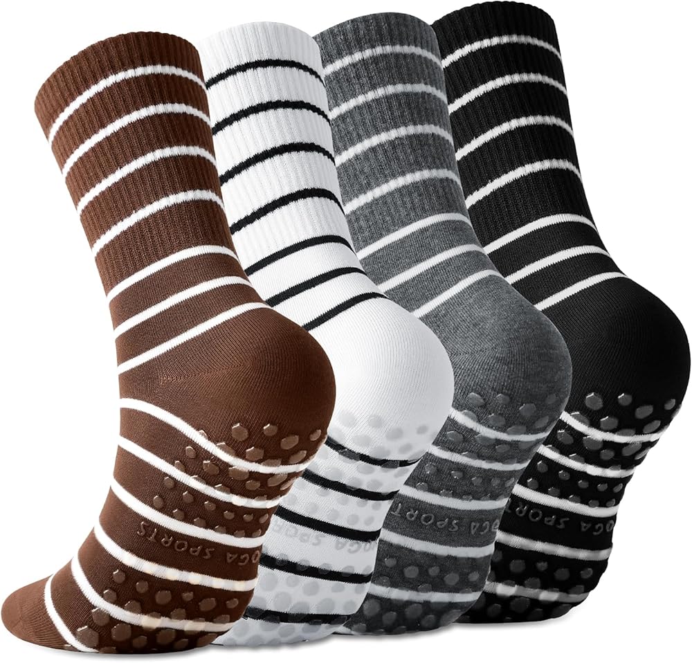 مثالية لأنشطة اللياقة البدنية المتعددة: جوارب رياضية ذات قبضة مثالية للنساء النشيطات أثناء روتين اللياقة البدنية. رائعة للبيلاتس، واليوجا، وباري، وتدريبات القوة، والباليه، والرقص، والتمارين الرياضية، وتمارين الصالة الرياضية العامة في الاستوديو، أو في المنزل، أو في الهواء الطلق. تدعم القبضة الآمنة الأنشطة العالية والمنخفضة التأثير