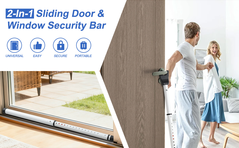 【مقاس واحد يناسب معظم التصميمات القابلة للتعديل】 يتم تعديل قضيب التلسكوب هذا بسهولة من خلال آلية الإبزيم البسيطة. يمتد من 17 إلى 41 بوصة لتأمين الأبواب والنوافذ المنزلقة، ومن 23 إلى 48 بوصة للأبواب المفصلية - مثالي كسدادة باب موثوقة وأداة أمان أثناء السفر للشقق والفنادق والباحات.