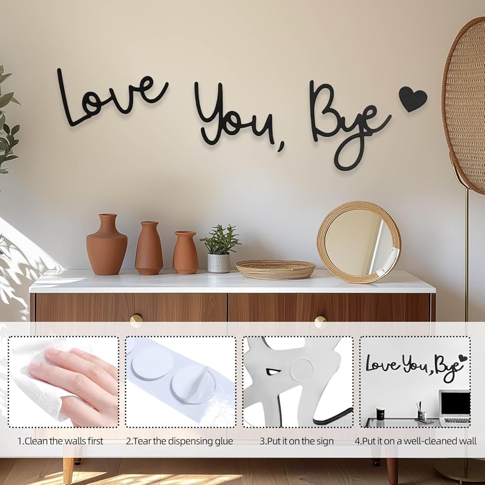 【رسالة قلبية وتصميم رومانسي】عبر عن حبك مع كل وداع! تتميز هذه اللافتة الخشبية الريفية بعبارة مؤثرة "Love You, Bye" بخط متصل ساحر، مما يضيف لمسة دافئة ورومانسية إلى روتينك اليومي. إنه تذكير دائم ولطيف بمحبتك لعائلتك وأحبائك.