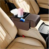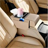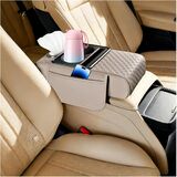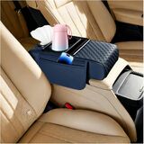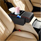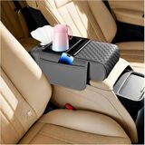• Multi-Functional: The car center console cover features a multifunctional design with two cup holders that can hold beverage cups. Equipped with a slot for placing mobile phones. There is also a tissue box available for storing tissues properly, making it easy to access without having to search around. There are side pockets on both sides, which can store various small items such as headphones, cards, and change, achieving classified storage and keeping the items in the car orderly.