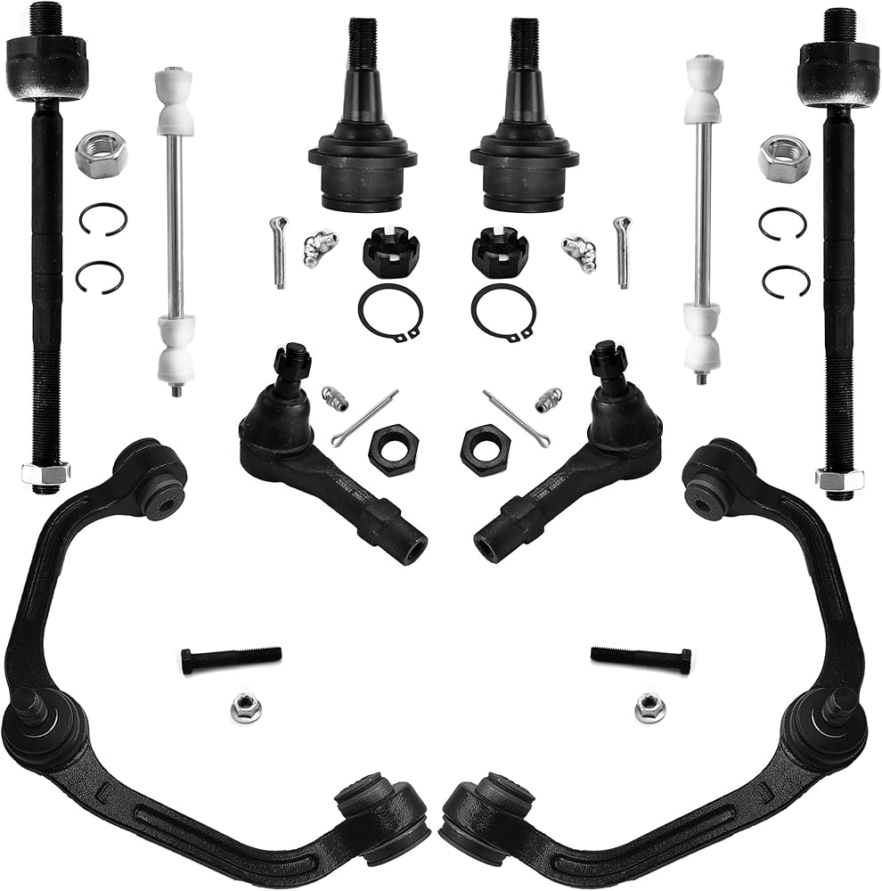 طقم تعليق 12 قطعة لفورد رينجر 1998-2011، لمازدا B2300 B2500 B3000 B4000، ذراع التحكم العلوي الأمامي ومفاصل الكرة السفلية وروابط شريط التأرجح الداخلية والخارجية لأطراف قضيب التعادل