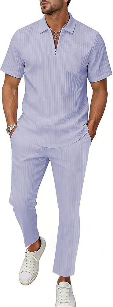 قميص بسحاب ربع مطور: يتميز الآن بجيب عملي على الصدر الأيسر بالإضافة إلى ياقة رياضية مع سحاب أمامي 1/4 للتهوية. أكمام قصيرة مريحة. يحافظ البنطلون على خصر مرن برباط مع جيبين