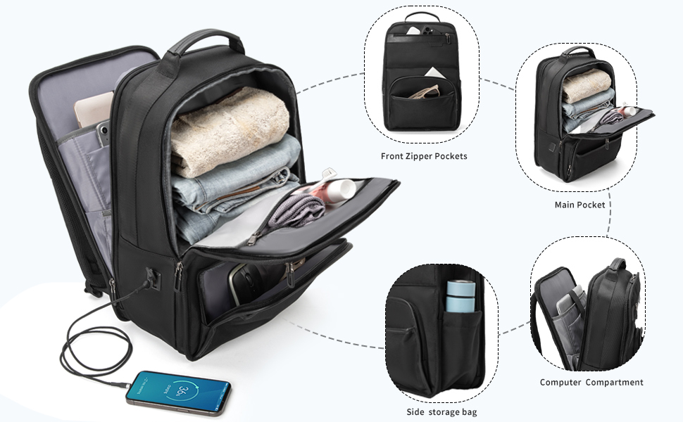 منفذ شحن سريع USB: يمكن لمنفذ شحن USB الخارجي أن يدعم الشحن السريع لهاتفك أثناء المشي. يمكن استخدام حقيبة الظهر الرفيعة العملية للغاية كهدية للعاملين في المكاتب. مثالي لقضاء عطلات نهاية الأسبوع والتنقل والعمل والتسوق والمكاتب وسفر العمل وغيرها من الأنشطة.