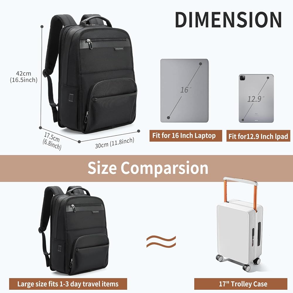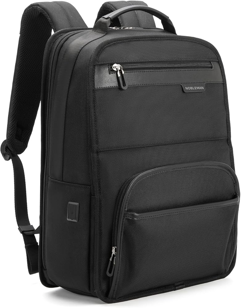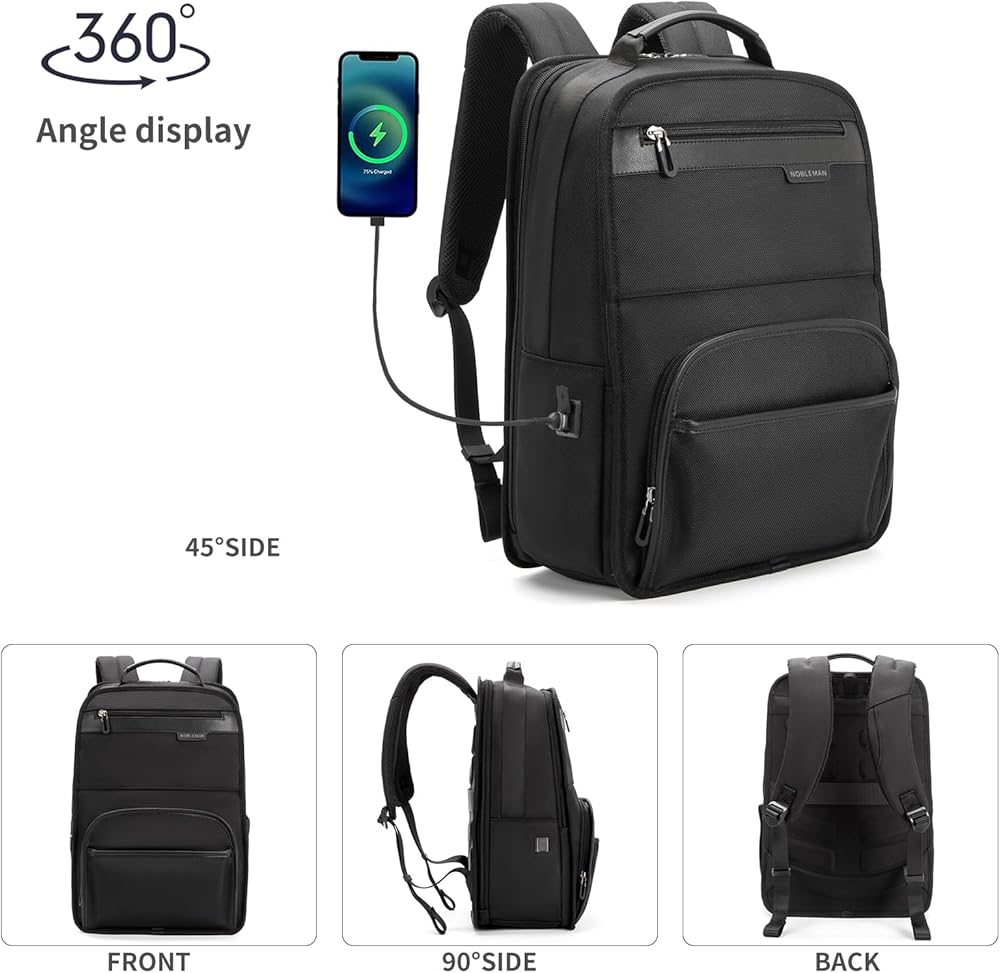 حقيبة ظهر للكمبيوتر المحمول مقاس 16 بوصة من NOBLEMAN للرجال المحترفين، قماش 1680D مقاوم للماء، حقائب ظهر كاجوال 20 لتر مقاومة للخدش، حقيبة نهارية شديدة التحمل لحقائب الكمبيوتر الجامعية مع شحن USB (أسود)