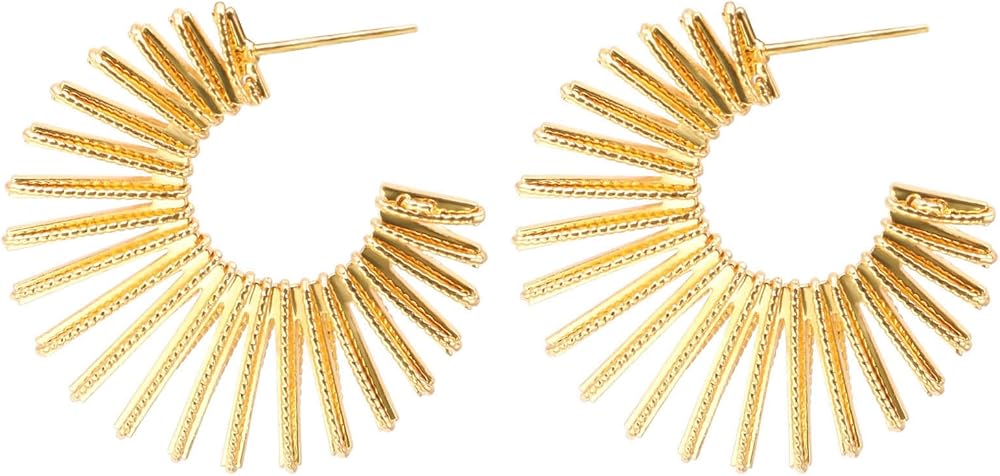 • الموضة إلى الأمام: نمط أشعة الشمس المعاصر يضفي لمسة عصرية على الأقراط الحلقية الكلاسيكية، مما يجعلها إكسسوارًا مثاليًا للنساء المهتمات بالموضة