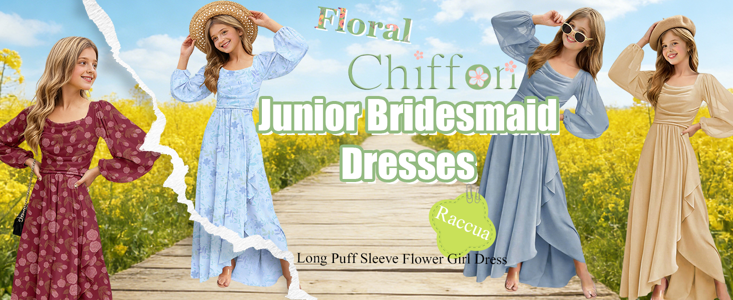 نسيج فستان الصيف: فساتين وصيفة العروس Jr مصنوعة من الشيفون عالي الجودة. مريح، خفيف الوزن، مسامي، وسهل الارتداء. فستان الفتيات المزين بالزهور مناسب لأميرتك الصغيرة، وحفيدتك، وابنة صديقتك