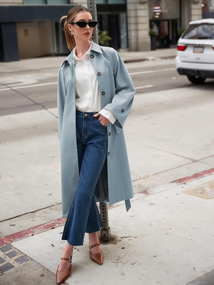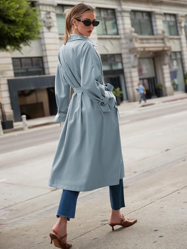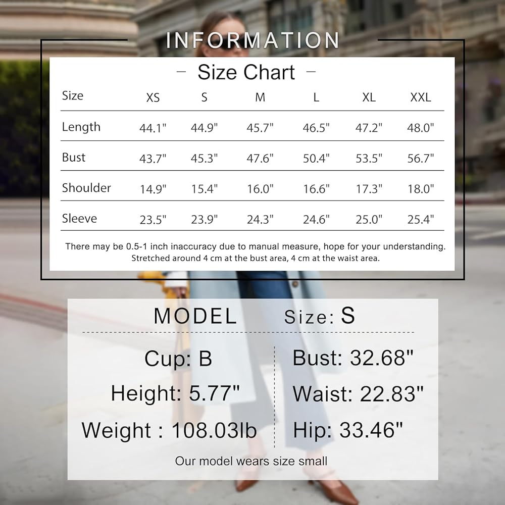 المواد: هذا المعطف الطويل مصنوع من مزيج ناعم ومريح من البوليستر والقطن. يتميز بملمس قماشي عالي الجودة لمظهر أنيق ومريح. إنه معطف مطر طويل يجب اقتناؤه للنساء.
