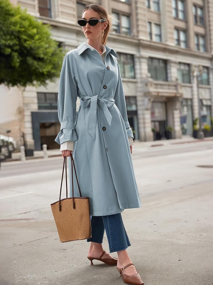 الميزات: يتميز هذا المعطف النسائي ذو المقاس النحيف بتصميم أحادي الصدر ويصل طوله إلى منتصف الساق. يشتمل على طية صدر وأكمام طويلة وربطة خصر وجيوب مخفية لإطلالة أنيقة وأنيقة.