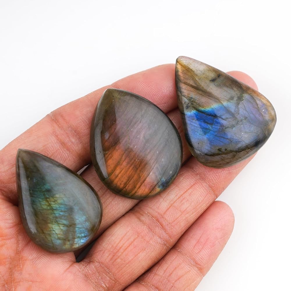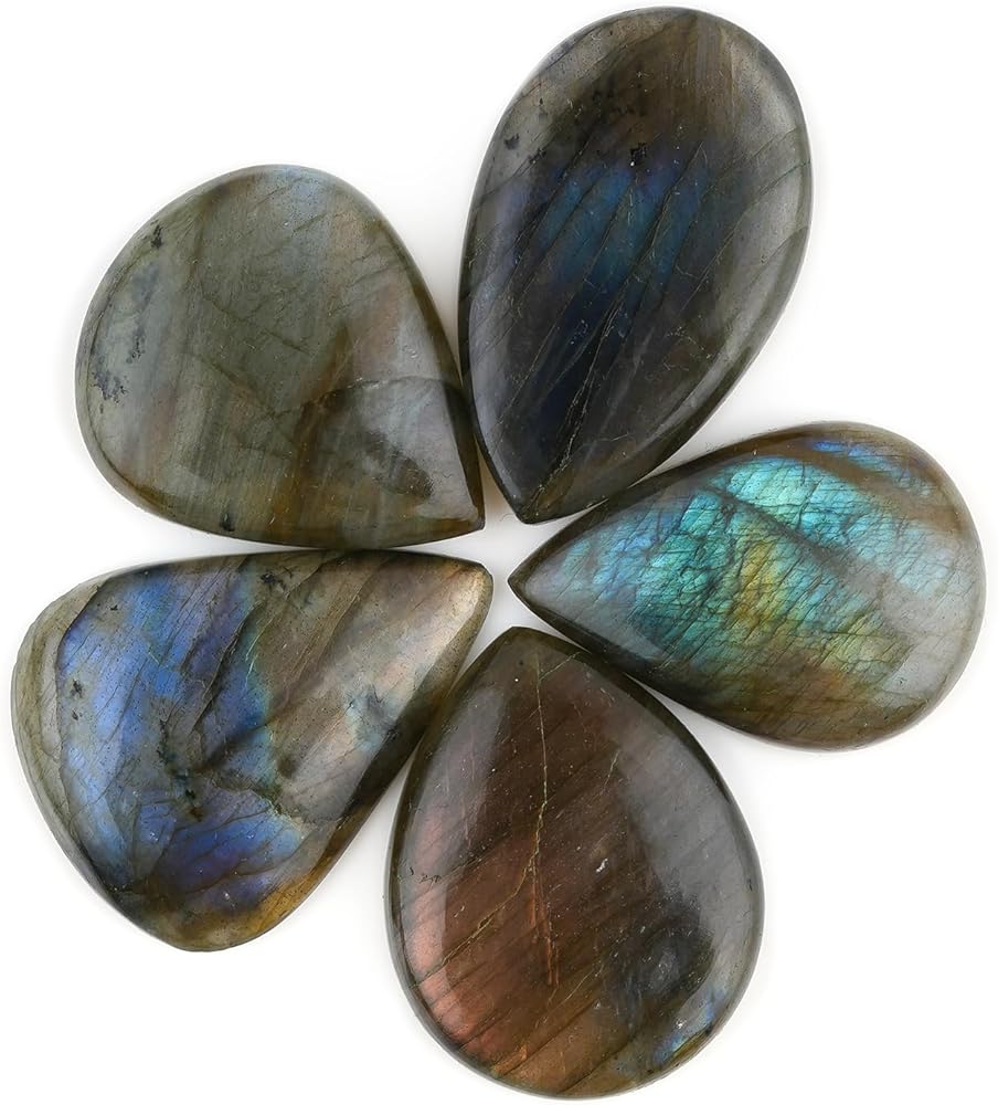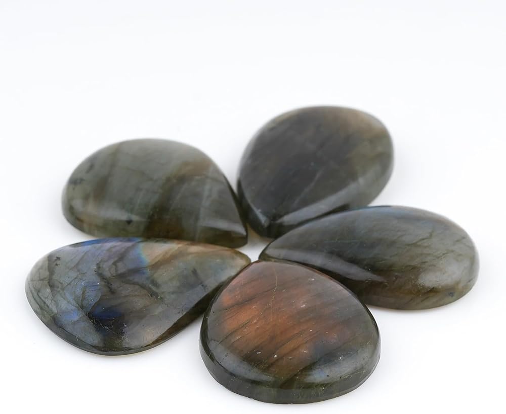 ColouredRocks (5pcs) (30-40mm) Large Labradorite Pear-Shapes Cabochon Gemstone for Healing, Meditation & Protection, Natural Loose Crystals, Wholesale Bulk Flat Back, Jewelry Making Supply, DIY, Crafting