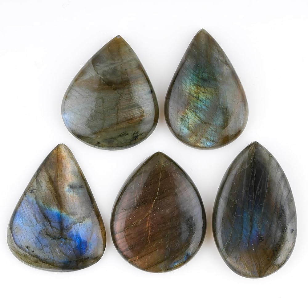 ColouredRocks (5 قطع) (30-40 مم) أحجار كريمة كابوشون كبيرة على شكل كمثرى من اللابرادوريت للشفاء والتأمل والحماية، بلورات طبيعية فضفاضة، ظهر مسطح بالجملة، مستلزمات صناعة المجوهرات، DIY، الصياغة