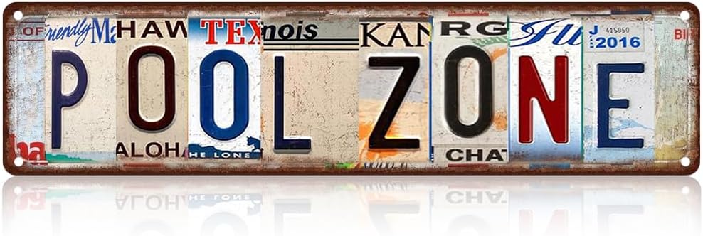 تصميم فريد من نوعه للوحة ترخيص عتيقة: هذه اللافتة اللافتة للنظر توضح "البلياردو" باستخدام مجموعة إبداعية من حروف لوحة الترخيص الأمريكية القديمة. يتميز التصميم بلمسة نهائية معتمة وحواف مقاومة للصدأ لتوفير مظهر عتيق صناعي أصيل دون فوضى الصدأ الحقيقي.