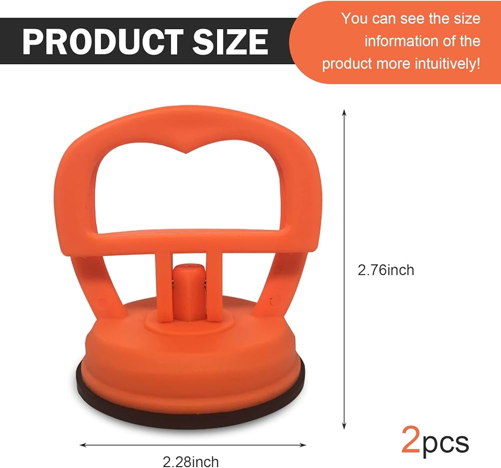 قطعتان من أدوات سحب انبعاجات السيارة، أداة إزالة انبعاجات جسم السيارة على شكل كوب شفط، أداة سحب مقبض فراغ لشاشات حركة البلاط الزجاجي، مناسبة لمعظم السيارات وسيارات الدفع الرباعي والشاحنات (برتقالي)