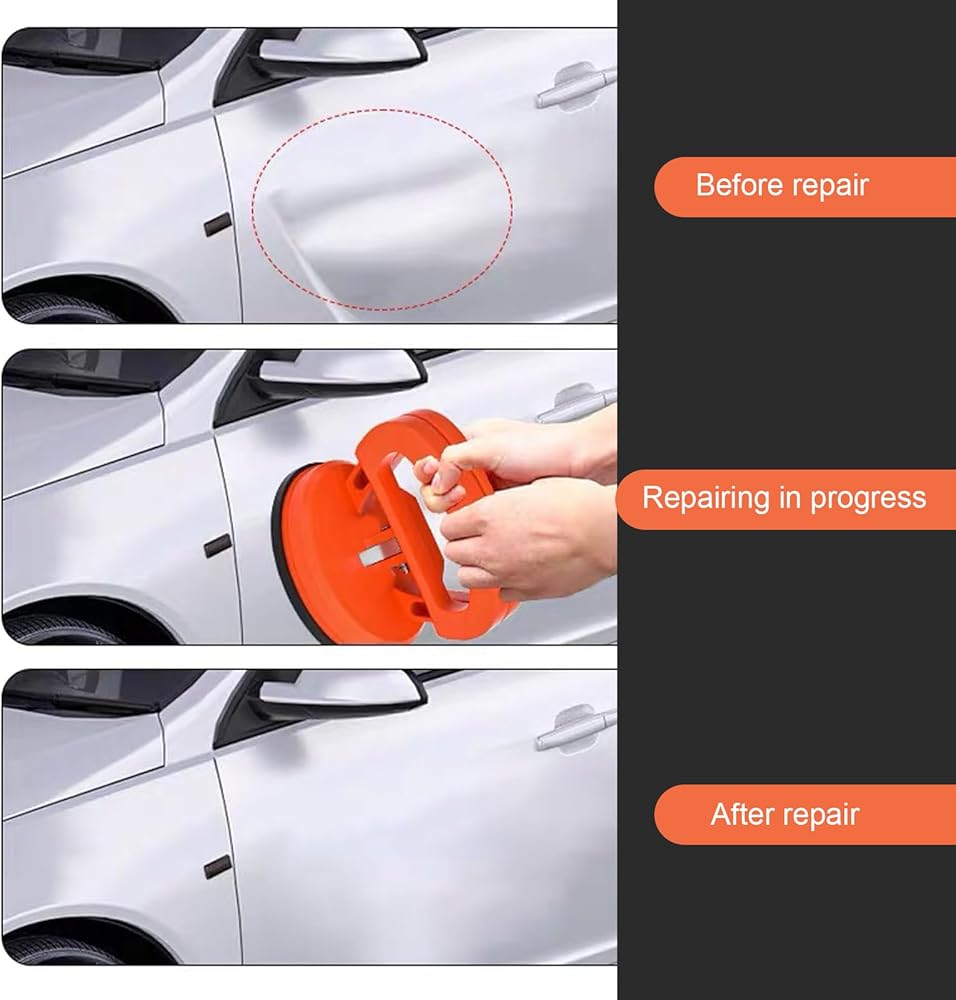 Usage Steps: First, clean and dry the surface. Heat the dented area with hot water or a hairdryer and dry it with a towel. Then adjust the handle, press the repair tool vertically, and quickly pull the handle to complete the repair.