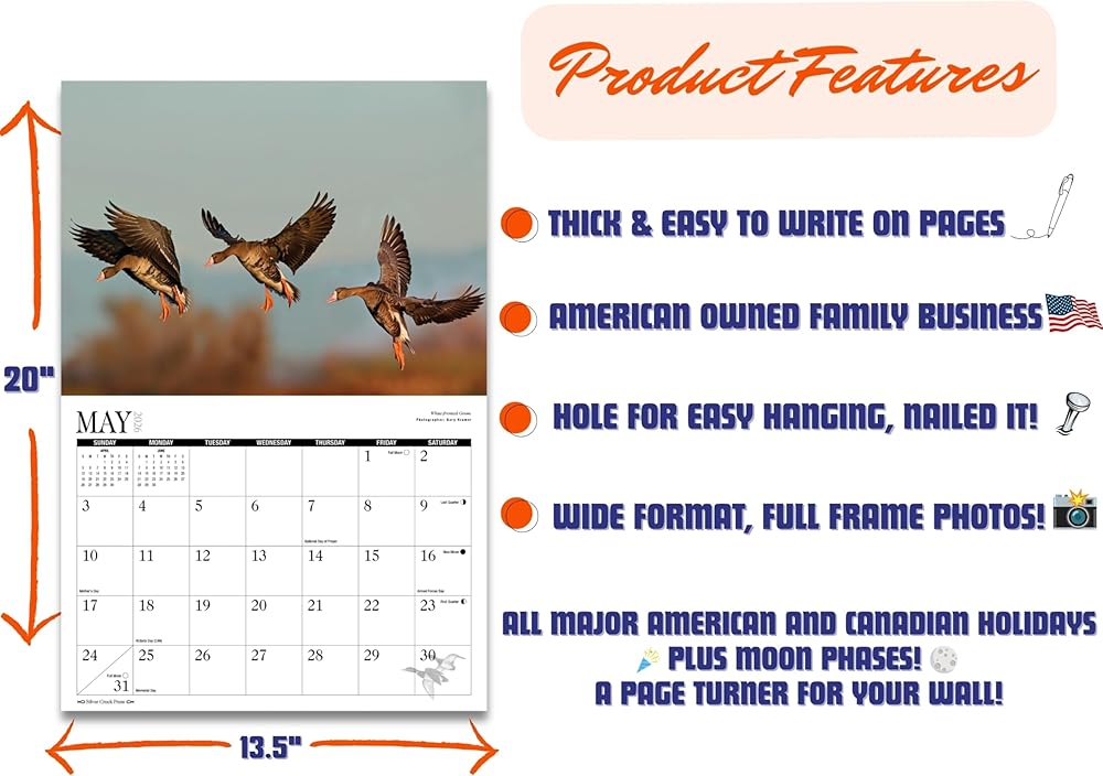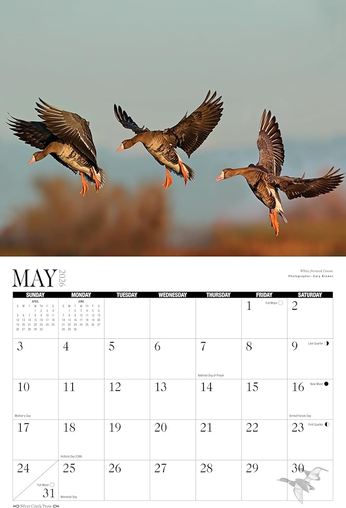 - Mallards, geese, wood ducks, pintails, teal, and more… you'll get a close-up look at them all with this beautiful wall calendar for 2026.