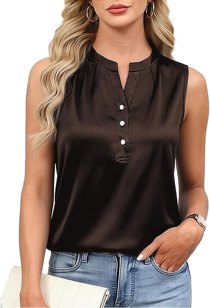 قمصان علوية للسيدات عصرية: تصميم بفتحة رقبة على شكل حرف V، يتميز بأزرار أمامية عملية وطيات كتف أنيقة، يوفر مظهرًا ساحرًا ومتطورًا. تخلق القصة بدون أكمام صورة ظلية أنيقة وعصرية، في حين أن نسيج الحرير المغزول السائل الفاخر يتناغم بين الراحة المريحة والأناقة السهلة.