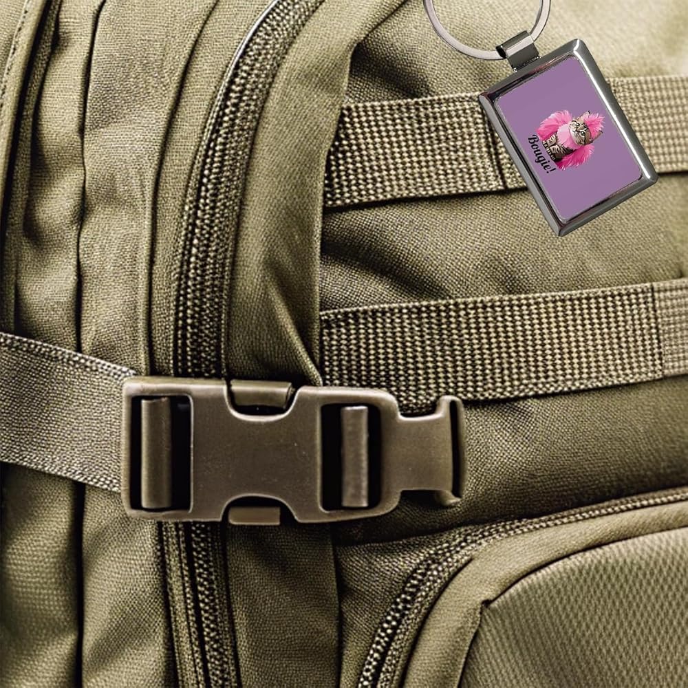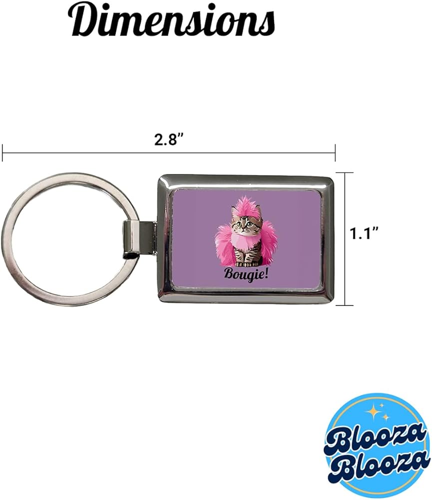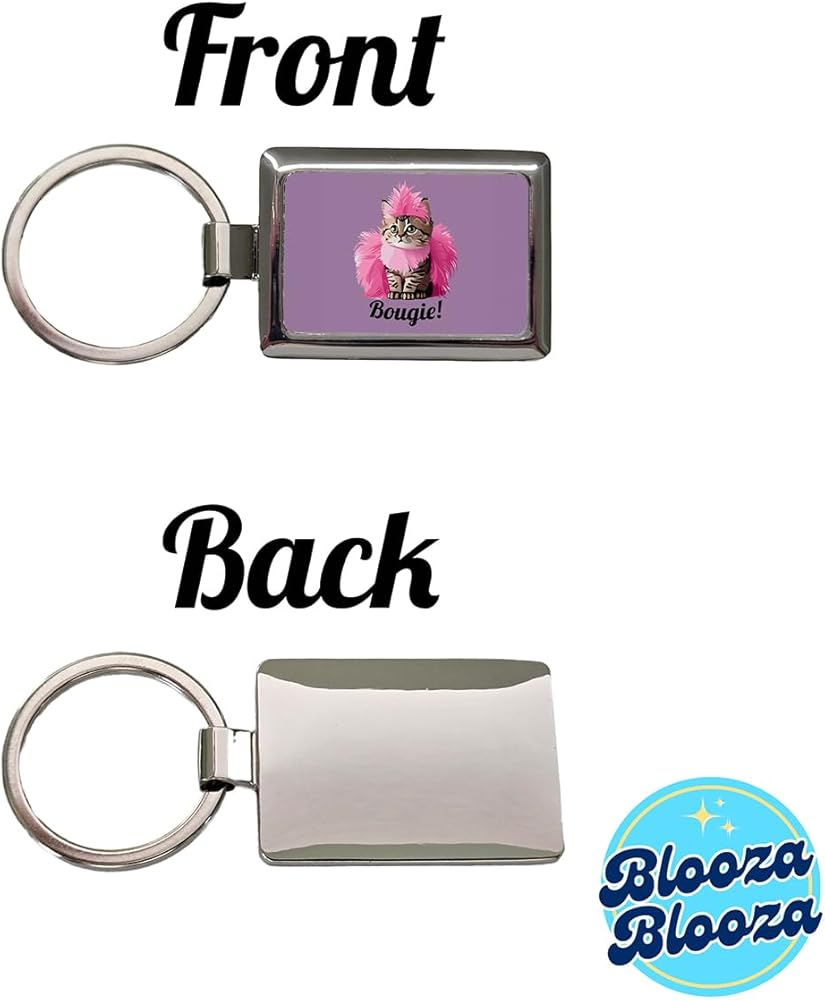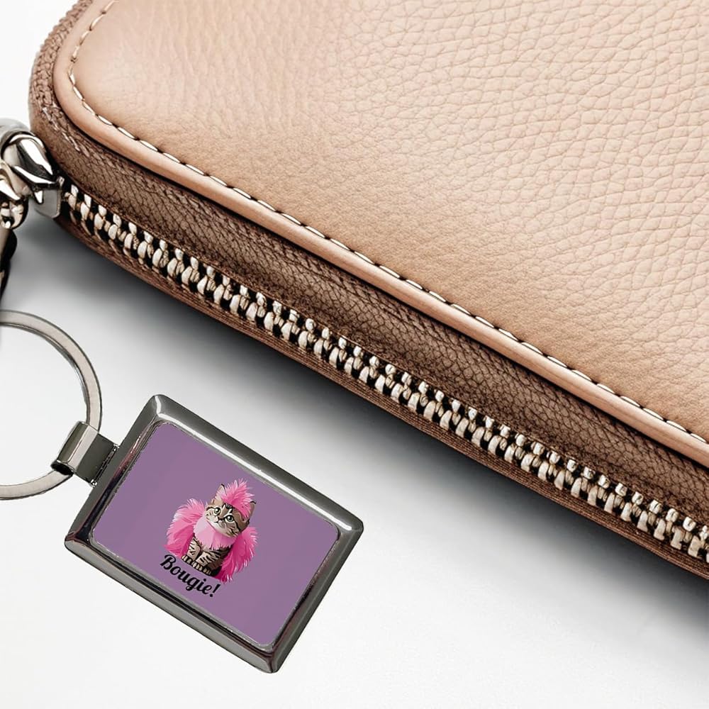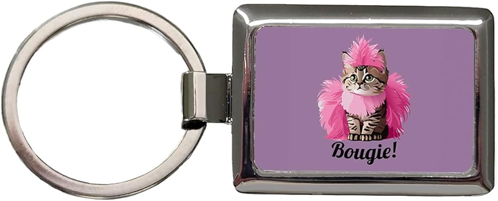 This sleek and durable keychain combines practicality with a touch of style and features our unique printed design "Cat Bougie Funny Pink Feather Boa". The sturdy keyring ensures your keys stay securely attached, while the compact design makes it easy to carry in your pocket or bag. Whether as a gift or a personal accessory for yourself, this keychain is the perfect blend of functionality and modern design, ready to accompany you on all your daily adventures. The keychain is made of metal with a mirror polished plated finish. It is approximately 2.8" x 1.1" x 0.2" in size and is sold individually.