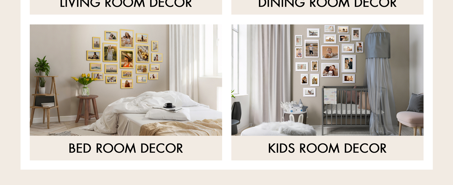 • مقاسات متعددة للاستخدام بنفسك: مجموعة إطارات الصور من مجموعة إطارات الصور متعددة الأحجام تتضمن 4 قطع 8x10، 8 قطع 5x7 و8 قطع 4x6 إطارات. يمكنك الجمع بين إطارات الصور بحرية. يمكن استخدام مجموعة إطارات معرض الصور لتزيين مساحات مختلفة في نفس الوقت