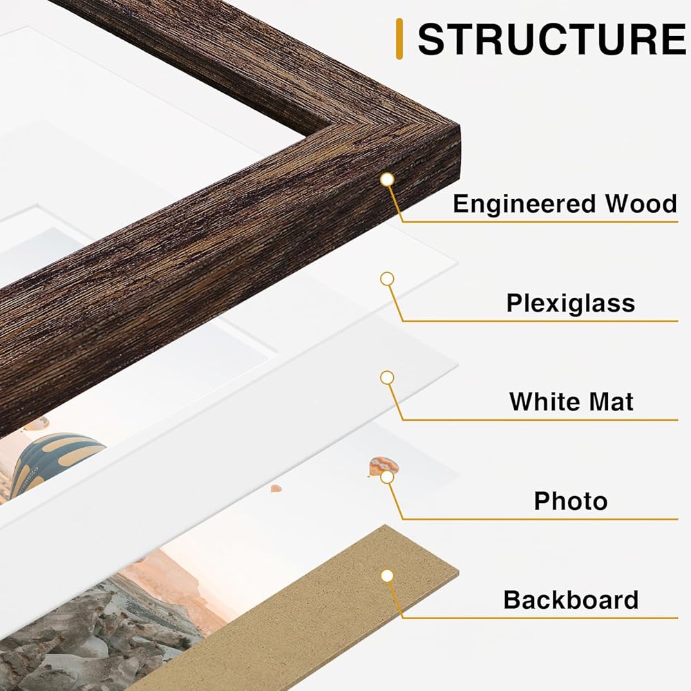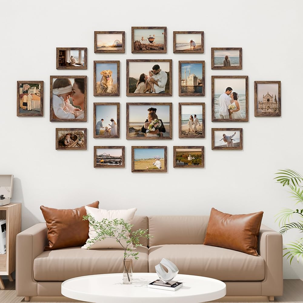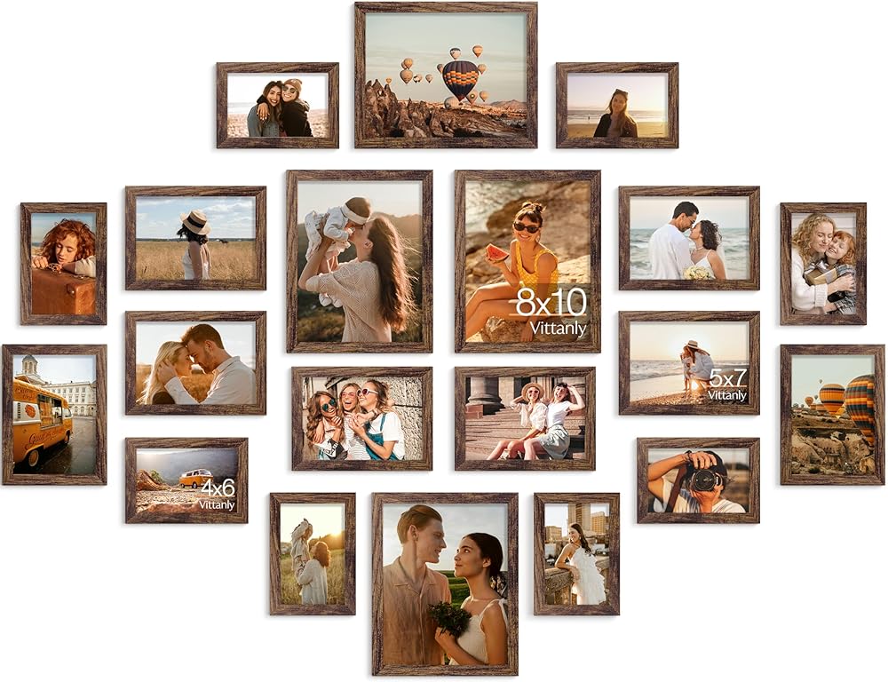 إطارات صور Vittanly لتزيين الحائط للتركيب أو عرض الطاولة، مجموعة إطار صورة للعائلة، مقاسات متعددة بما في ذلك 8x10، 5x7، 4x6، بني قديم، 20 حزمة