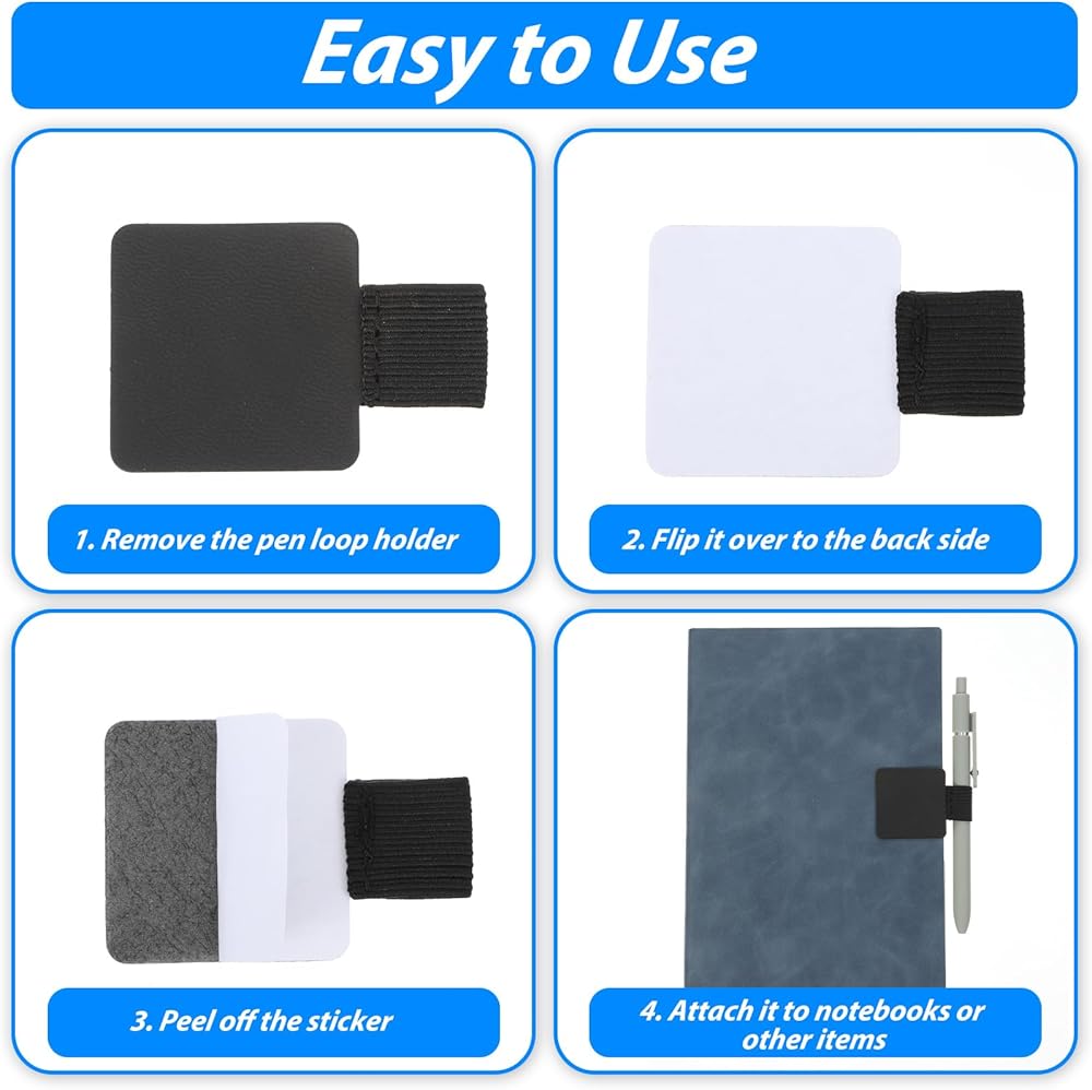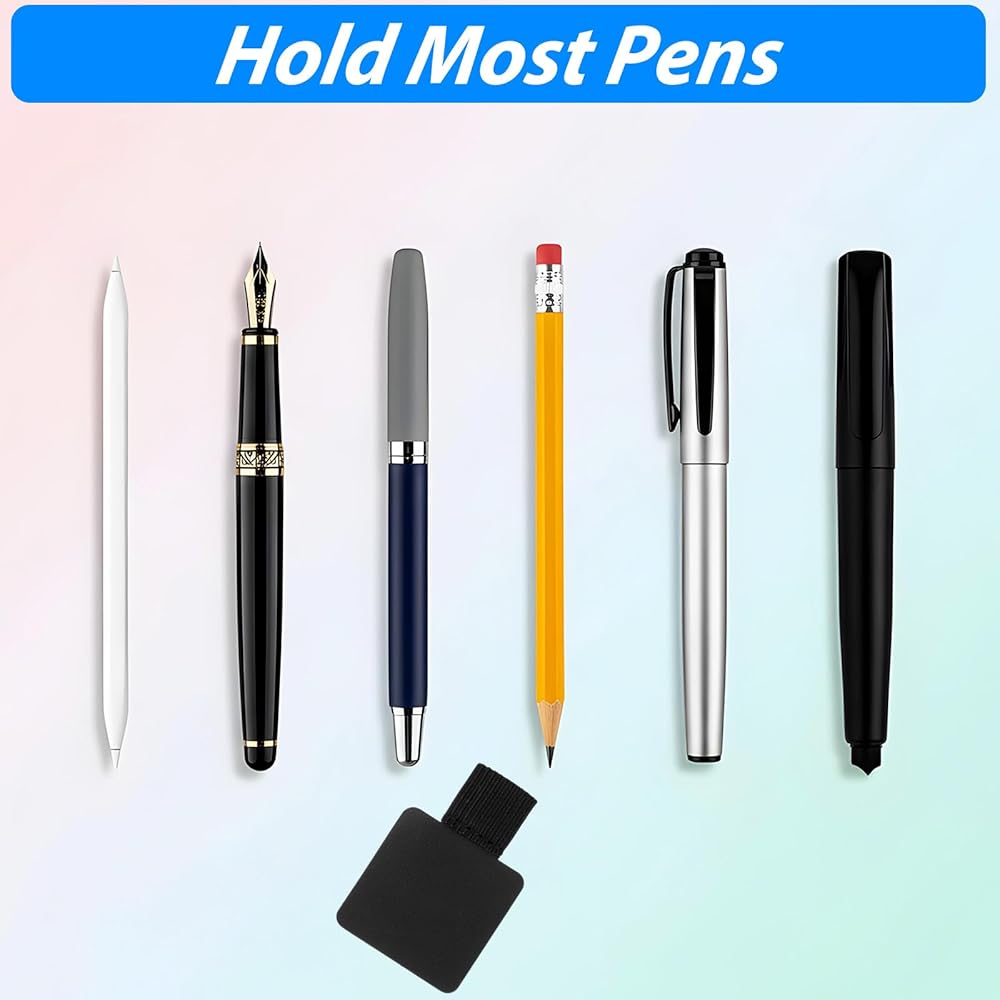 Secure Adhesion: The adhesive pen loop is designed to stick firmly to any flat surface, ensuring your pen holder for notebook remains in place. Perfect for keeping your favorite pen or stylus secure