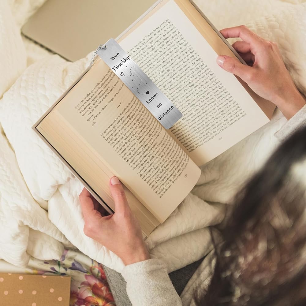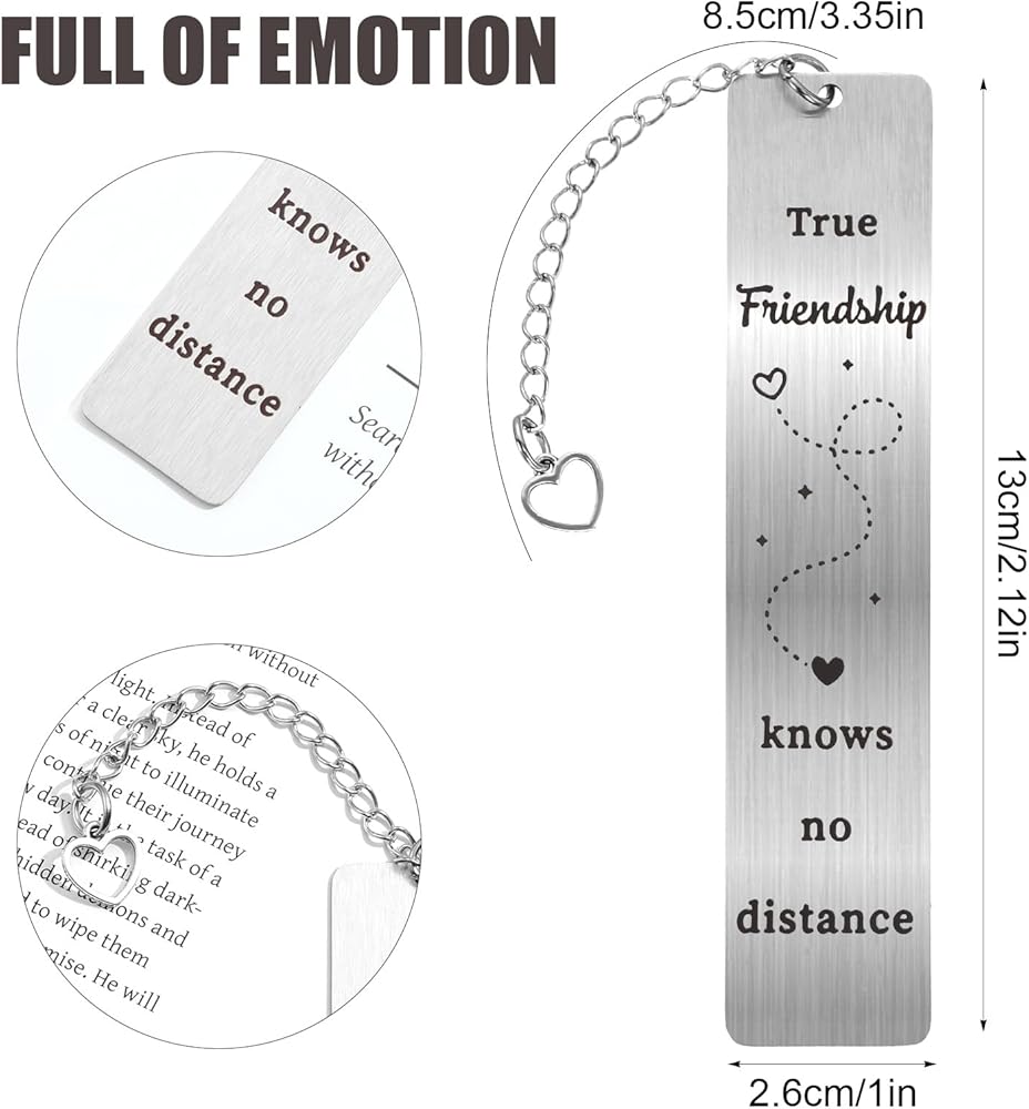 • Quality Material: The friend bookmark is made of stainless steel, quality polishing, smooth surface, no rust, no be fade or deform, and comes with a beautiful gift box, is a nice gift for friend bestie. This friendship bookmark is about 5 inches/130mm long, 1.02 inches/26mm wide, sturdy to last long, lightweight to use. book lovers gifts, librarian gifts, book reading accessories, gifts for book lovers women, book lover gifts for women, book reader accessories