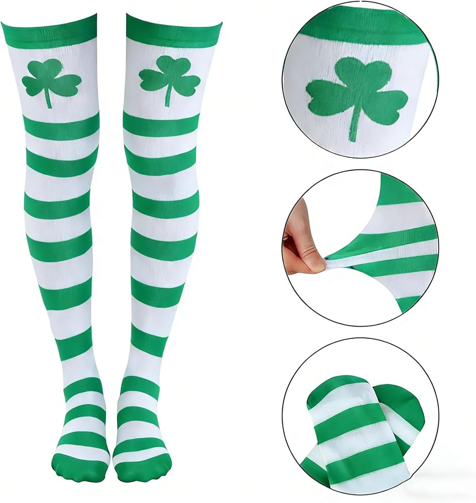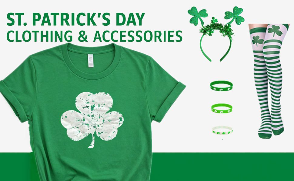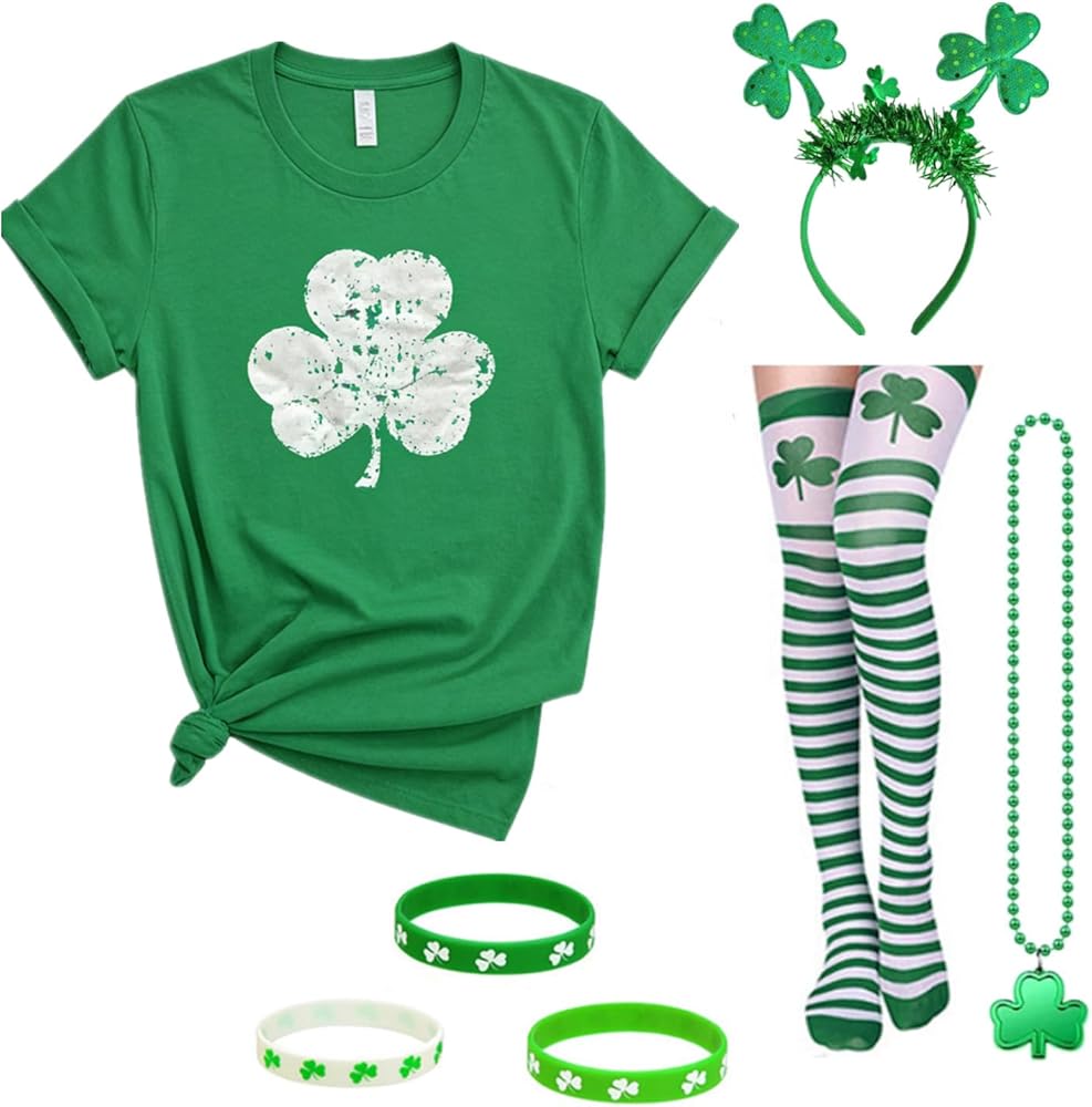 الزي الكامل لعيد القديس باتريك: احتفل بأناقة مع مجموعة الملابس الخضراء الكل في واحد، بما في ذلك تي شيرت بطبعة البرسيم، وجوارب مخططة تصل إلى الفخذ، وعصابة رأس، وقلادة، وأساور - كل ما تحتاجه للحصول على مظهر أيرلندي ممتع