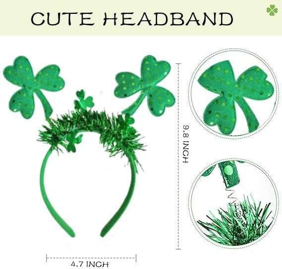 تصميم احتفالي ولافت للنظر: لون أخضر ساطع مع مطبوعات البرسيم المتلألئة ذات الأربع أوراق والإكسسوارات المطابقة تجعلك مميزًا في المسيرات أو الحفلات أو المناسبات المدرسية
