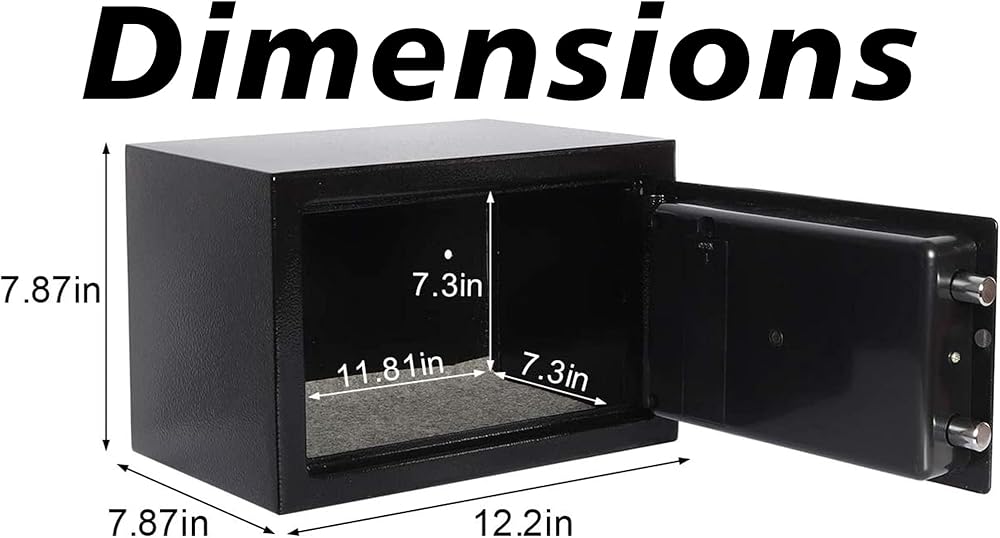• قم بحماية مقتنياتك الثمينة وأموالك ومستنداتك المهمة وغيرها من العناصر باستخدام هذه الخزنة الإلكترونية الفولاذية المتينة. يبلغ مقاسها 12.2 بوصة × 7.87 بوصة × 7.87 بوصة ويزن 10.9 رطل.
