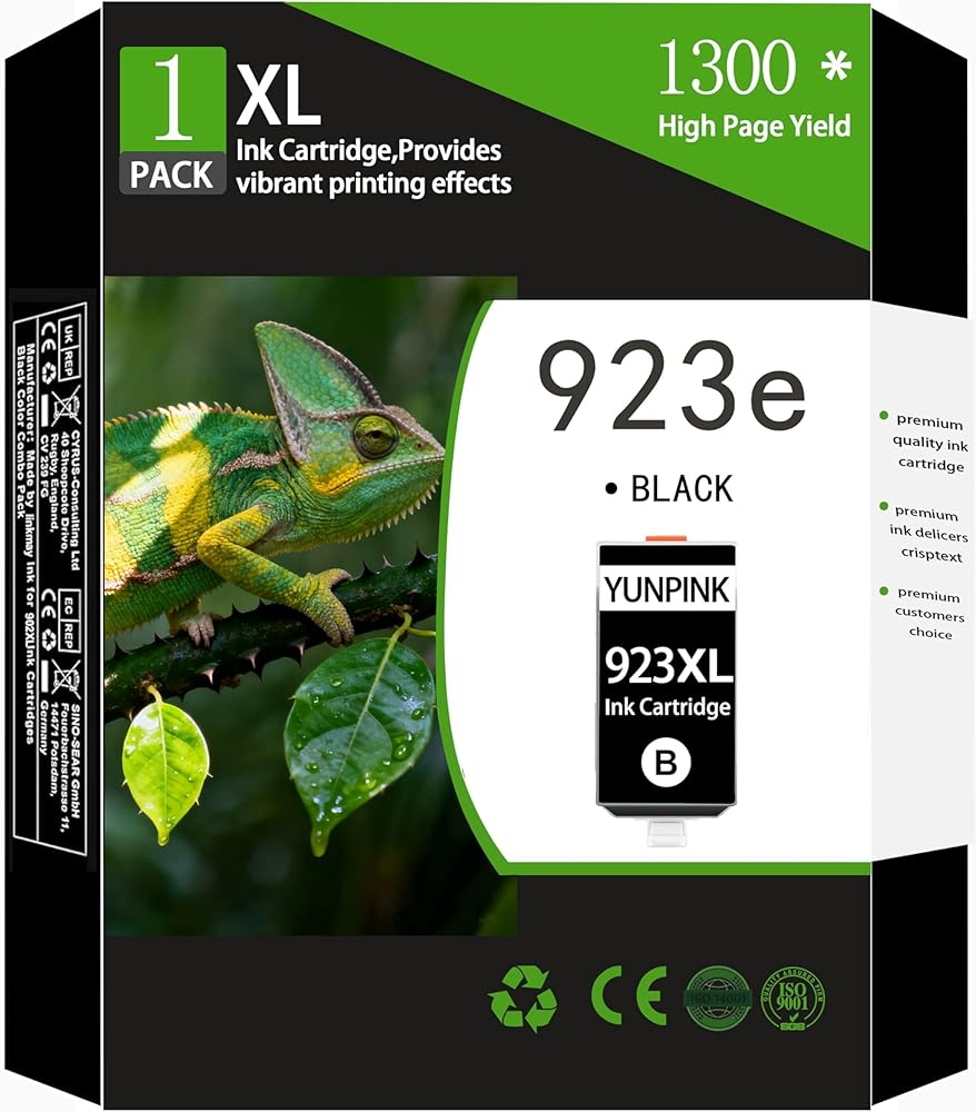 تشتمل العبوة على: خراطيش حبر YUNPIN (923e، مجموعة واحدة سوداء) بديلة لخراطيش الحبر الأسود HP 923.