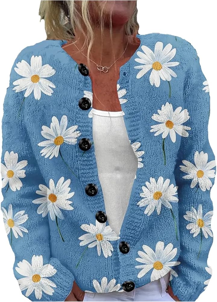 Elevate your wardrobe with this stunning **Floral Cardigan for Women**, designed to blend effortless style with cozy comfort. Perfect for **adult women** of all sizes, this **plus size floral cardigan** features a delicate **daisy floral print** that adds a touch of bohemian charm to any outfit. Whether you're dressing up for a formal occasion or keeping it casual for everyday wear, this **long sleeve cardigan** is a versatile layering piece you'll love.