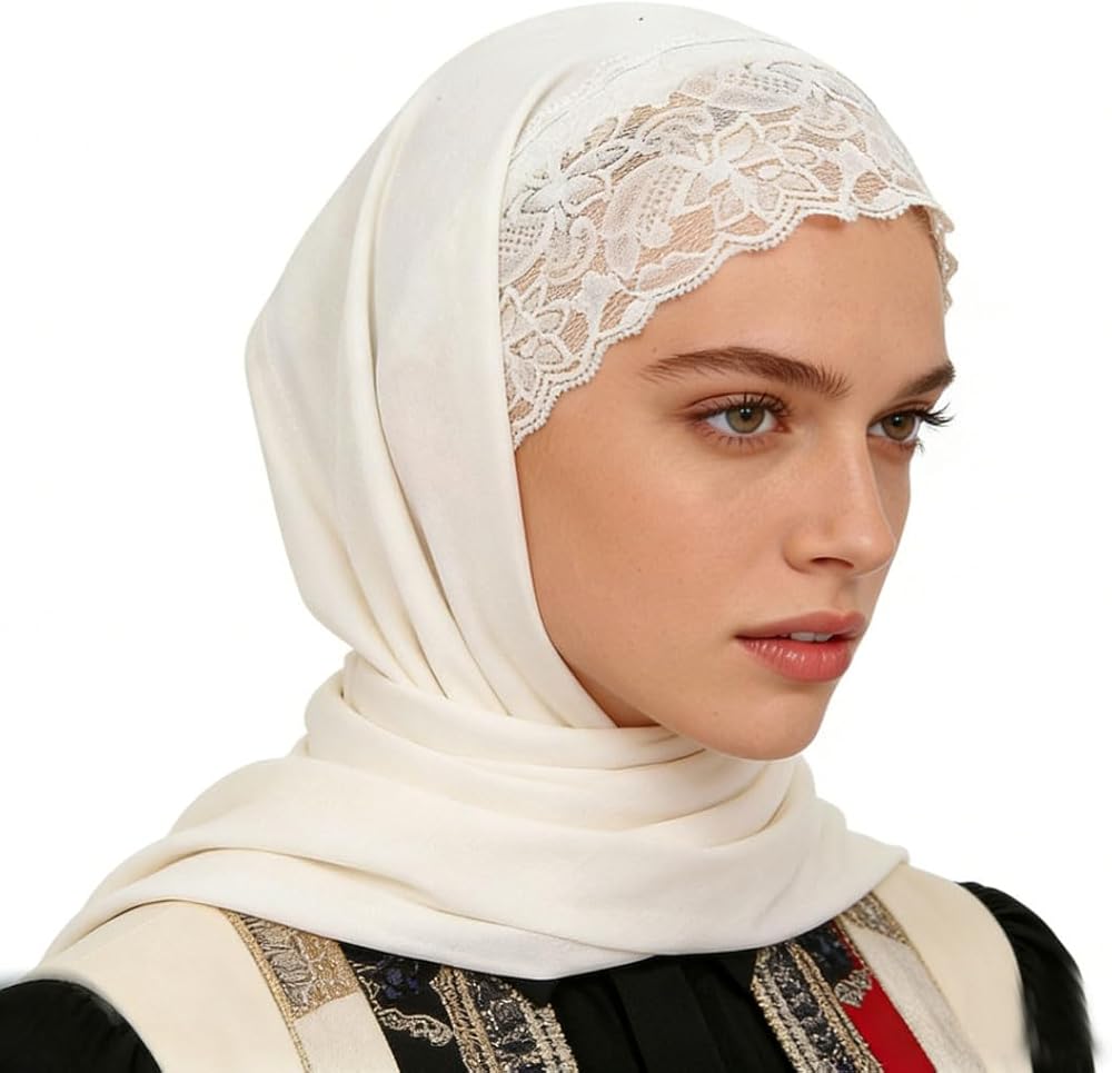 تصميم دانتيل أنيق، ألوان ثابتة يسهل تنسيقها مع الحجاب والملابس - يتميز بعنصر دانتيل رقيق، مما يضيف لمسة من الأنوثة والرقي إلى مظهرك. ألوان ثابتة بسيطة أسود وأبيض رمادي فاتح وردي قهوة نبيذ أحمر جيشي أخضر أزرق داكن، يسهل تنسيقه مع حجابك ووشاحك.