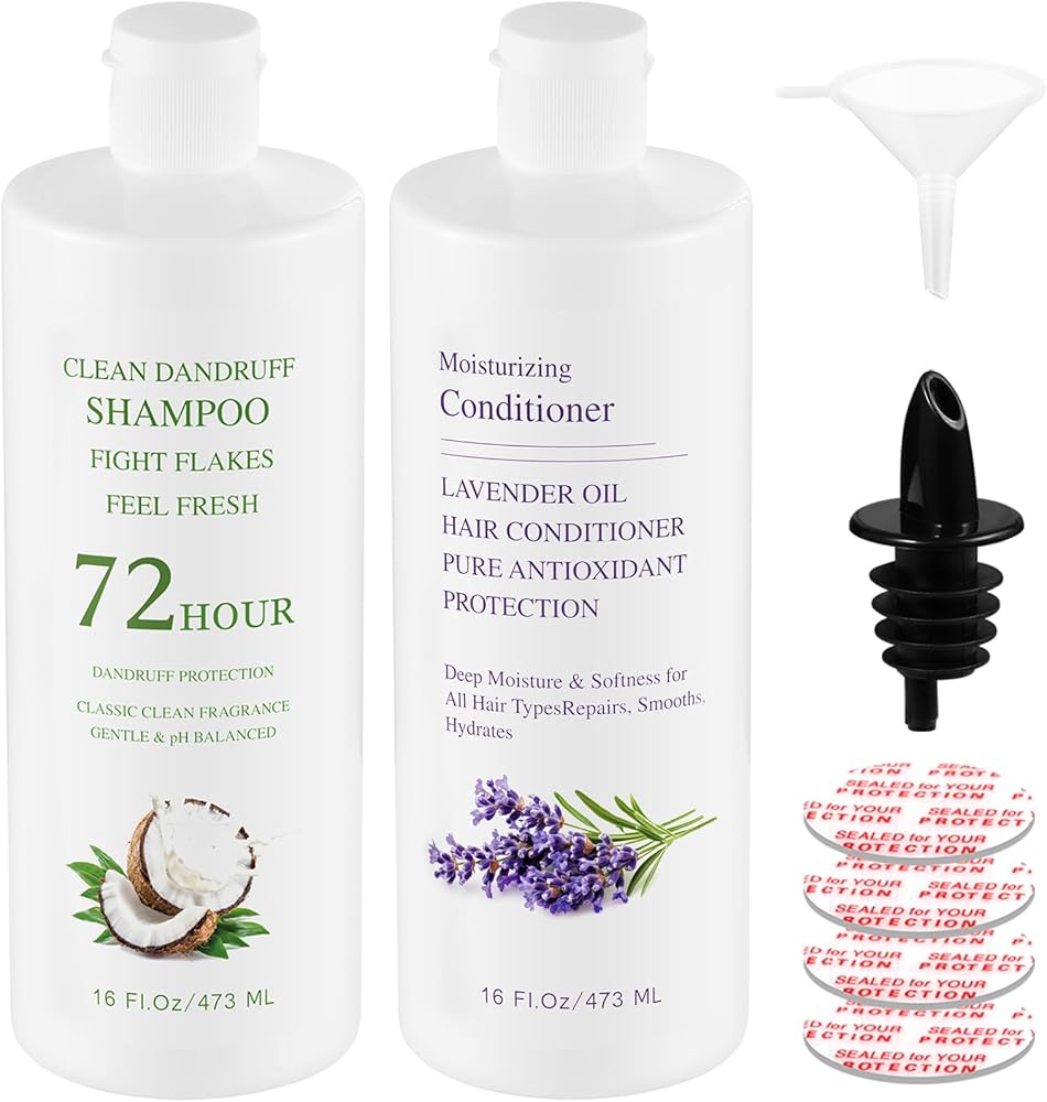Your Cruise Travel Essentials – This practical travel bottle set includes two 16oz + two 12oz empty bottles for shampoo or conditioner, a Liquids Spout, and a travel funnel for fast, easy refills. Designed with a leak-resistant build, it delivers worry-free portability. Refilling Liquids with the included funnel, and you'll save significantly by avoiding expensive bill.