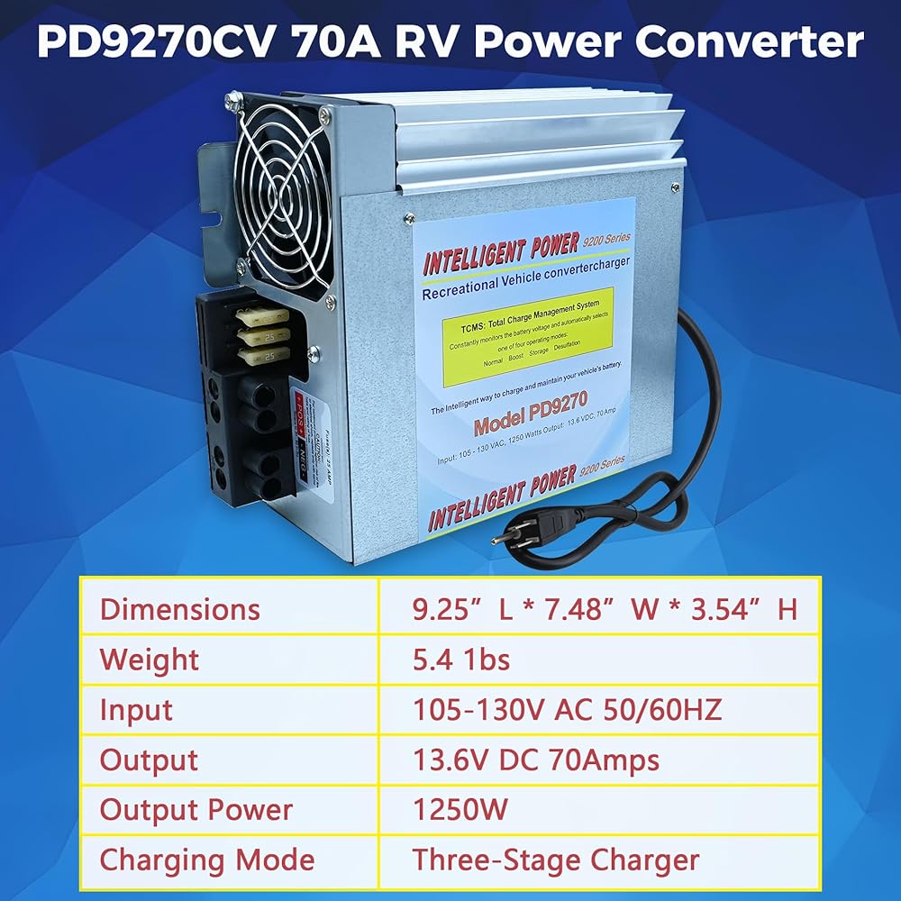 شاحن محول الطاقة PD9270 70A RV | استبدال مباشر لسلسلة PD9270C وInteli-Power PD9200| شحن البطارية تلقائيًا على 3 مراحل| محول طاقة من 120 فولت إلى 13.6 فولت