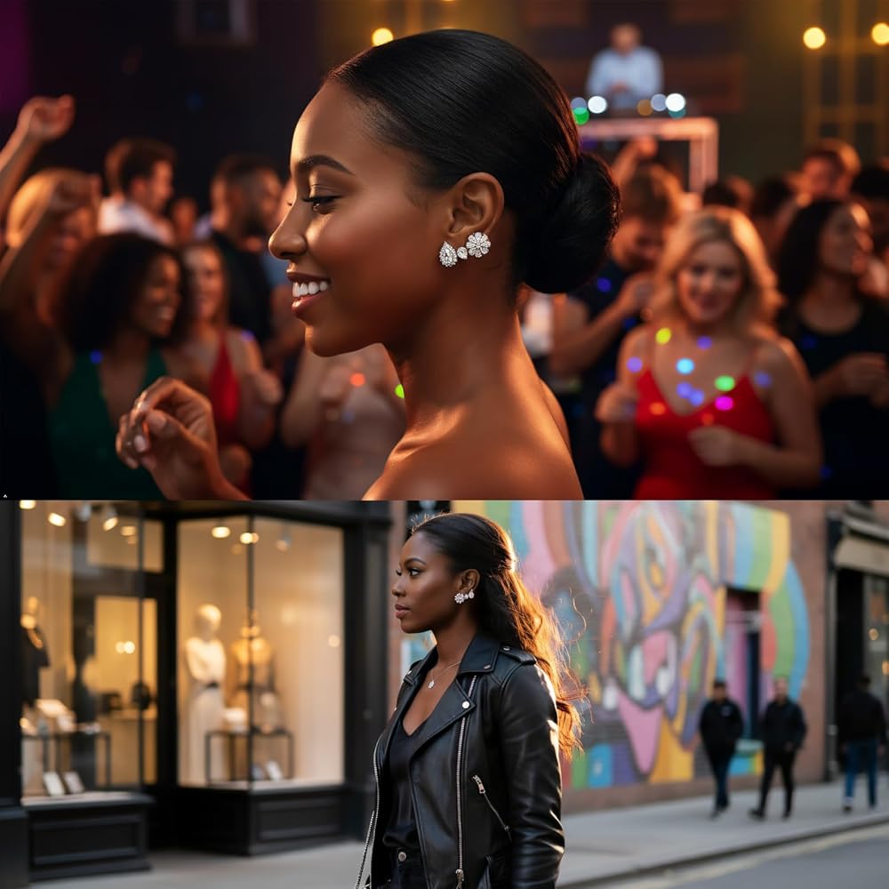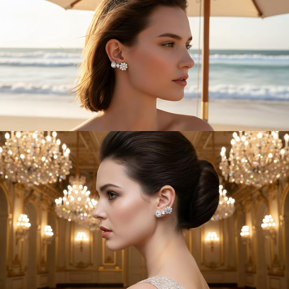 متعددة الاستخدامات لأي مناسبة: متوفرة في 3 أنماط أنيقة (على شكل زهرة، دمعة بسيطة، دمعة مؤطرة بحجر الراين)، هذه الأقراط الكريستال ترفع كل مظهر. إنها مثالية لإضفاء لمسة جمالية على ملابس الزفاف، أو التألق في الحفلات، أو إضافة بريق رقيق إلى ملابسك اليومية الكاجوال - وهي مثالية للحظات الرسمية والاسترخاء.
