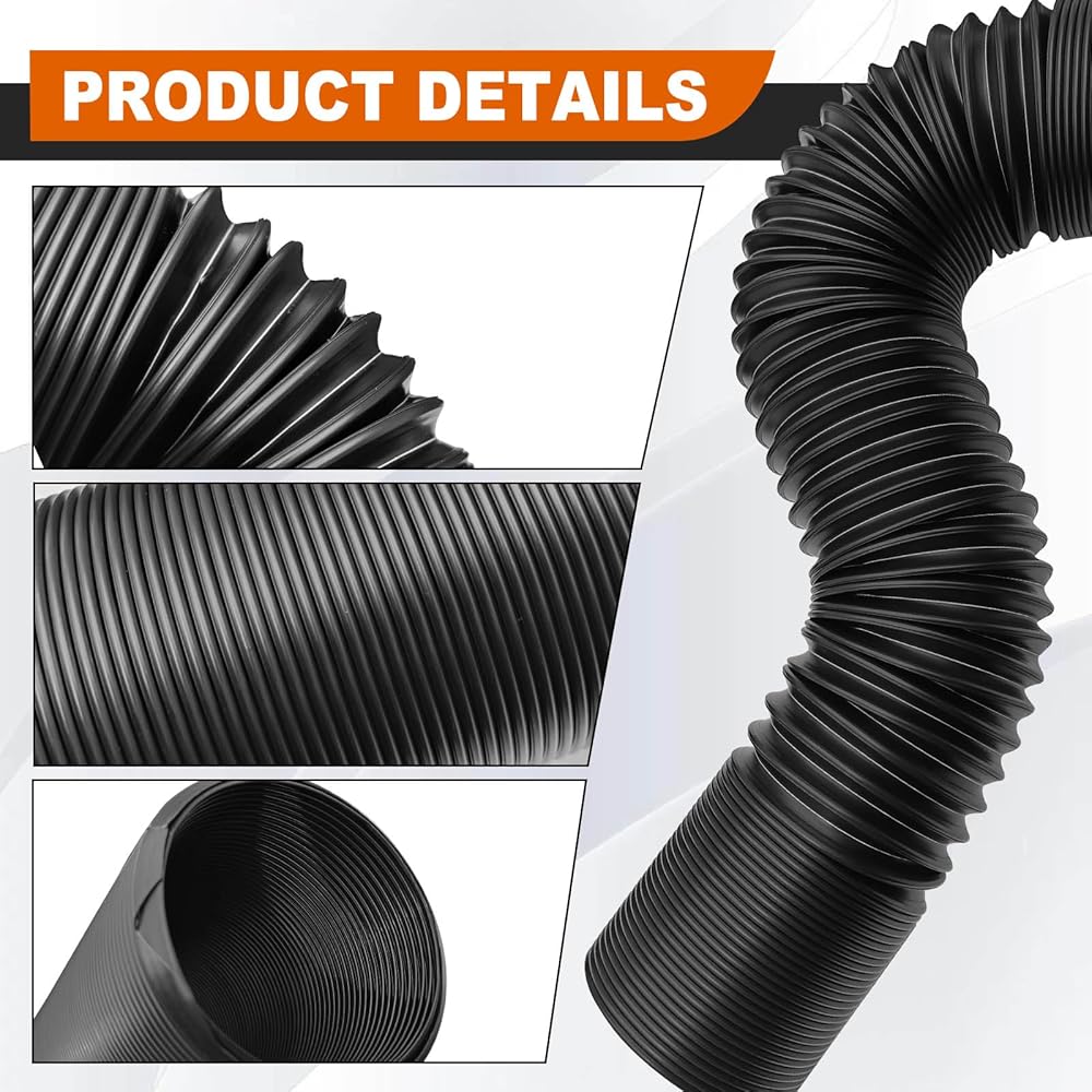 • Universal and Durable Fitment: Crafted from flexible yet sturdy PVC, this 3" (76mm) hose extends up and fits most vehicles—cars, SUVs, and trucks. Ensure port measurement before purchase for a perfect seal.