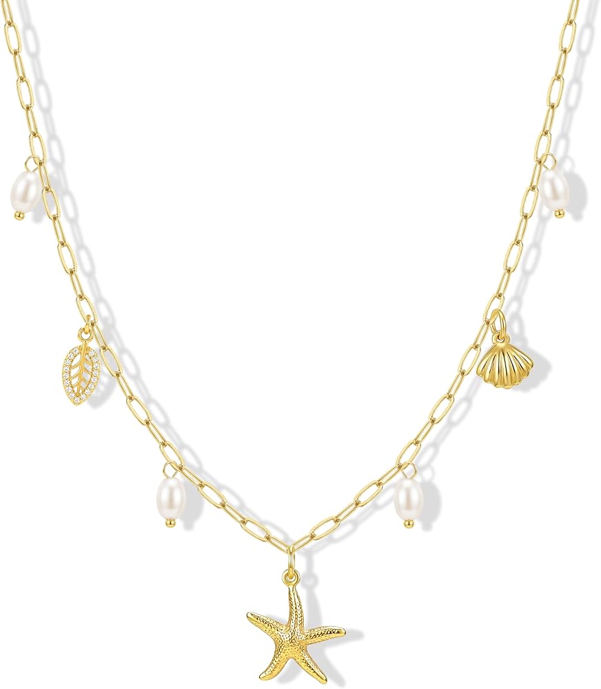 ⭐تصميم مجوهرات شاطئية رائعة: مصنوعة من قلادة نجم البحر المفصلة، وخرز ذهبي لامع، وحلية صدفة لطيفة، ولؤلؤة متوهجة. تم تشطيب كل قلادة بطلاء ذهبي عالي الجودة للحصول على لمعان ولون يدومان، مما يوفر شعورًا فاخرًا مثاليًا لأي مناسبة.