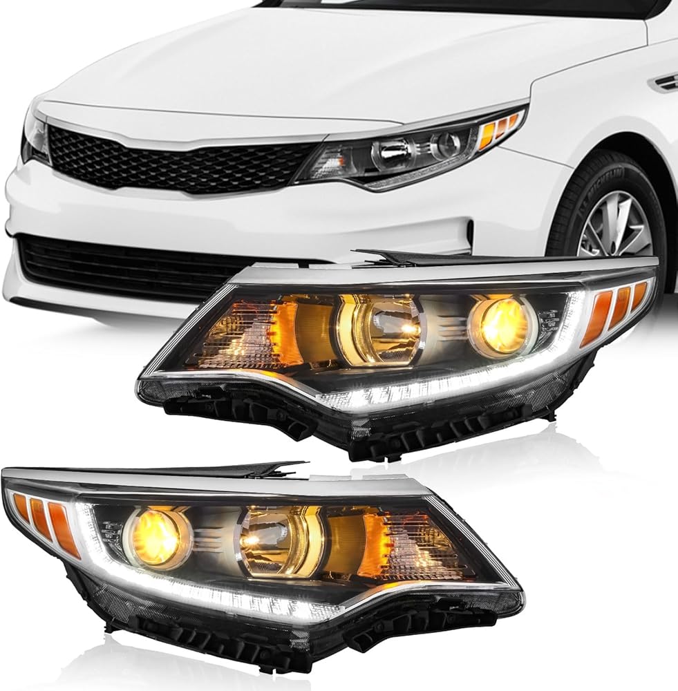 Compatible with 2016 2017 2018 Optima. For Factory Halogen Headlight w/LED DRL Model.