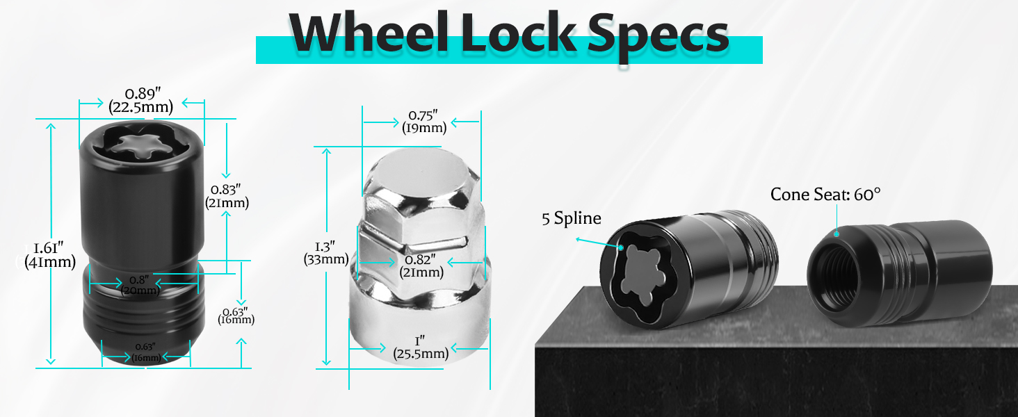 • أمان مدروس: قفل العجلة لصواميل إطارات السيارة مع نمط مسنن واضح لأمن العجلات. تأتي أقفال صواميل العجلة مع مفتاحين، أحدهما يمكن استخدامه كمفتاح للاستخدام اليومي والآخر كمفتاح احتياطي.