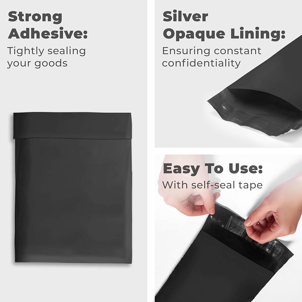 9"x12" Black Poly Mailer Bags – 1000 Mailers Included