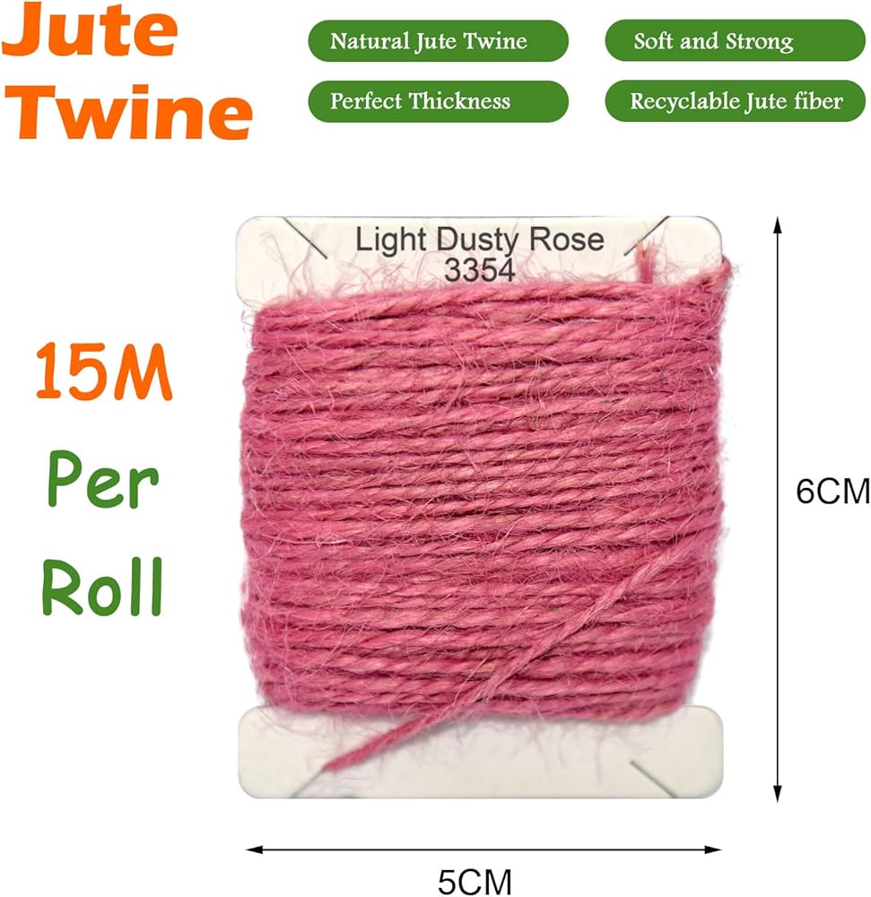خيوط الجوت بطول 15 مترًا للحرف اليدوية وتغليف الهدايا والتعبئة والبستنة والكروشيه والحياكة المكرامية (وردة مغبرة خفيفة)