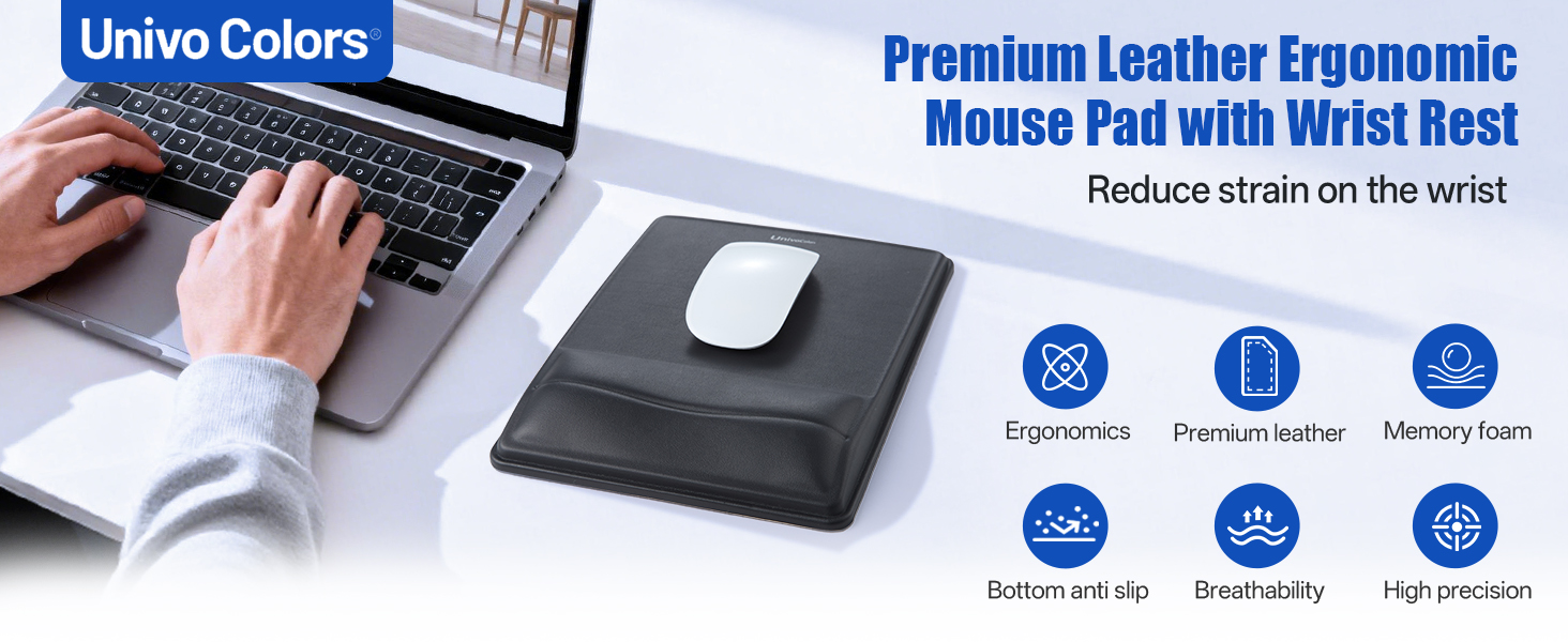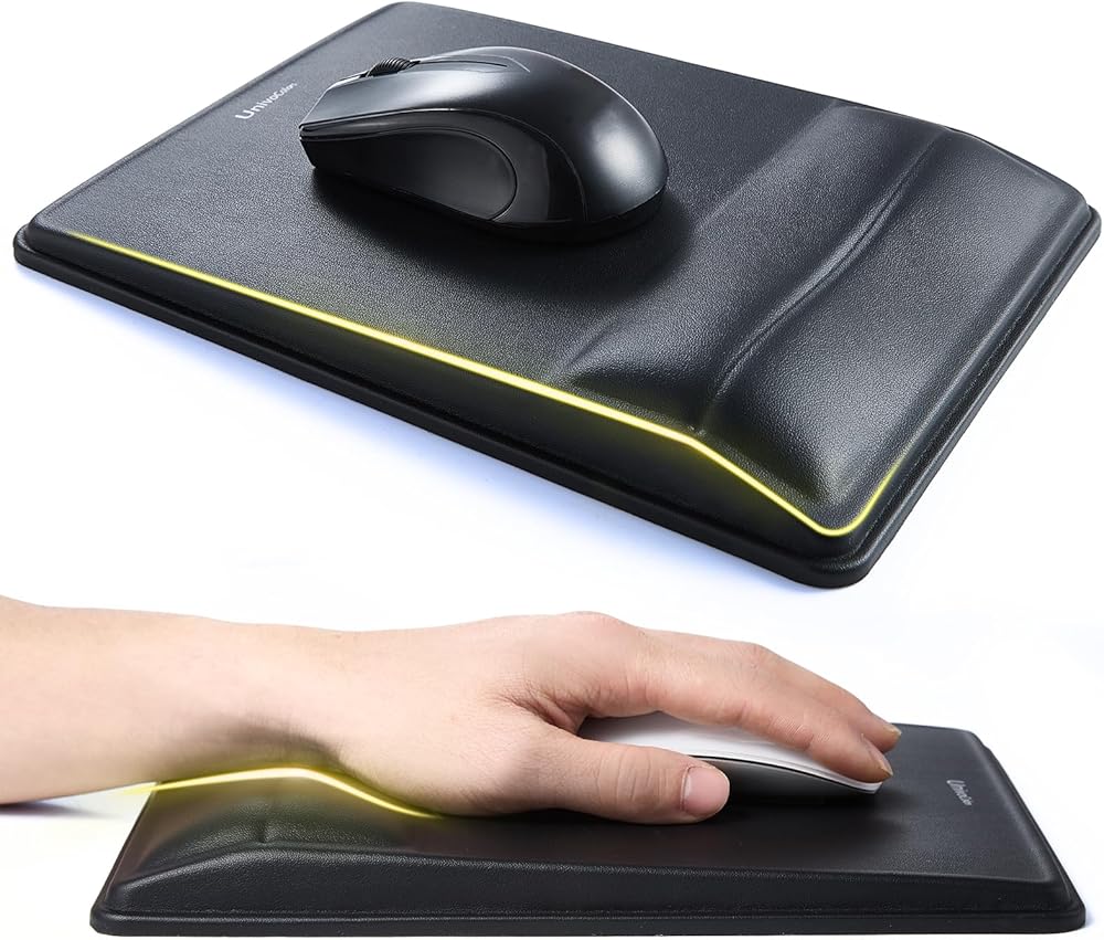 لوحة ماوس لتخفيف الآلام ودعم المعصم من يونيفو كولورز، تصميم مريح مع رغوة ذاكرة محيطية، سطح بولي يوريثان عالي الدقة، قاعدة غير قابلة للانزلاق للمكتب/الألعاب (أسود)