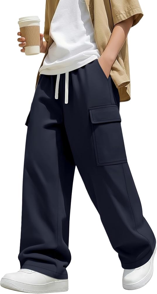 Juniors boys baggy straight leg pants are easy to care for, you can throw them in the washing machine or mobile phone, hang them to dry naturally.